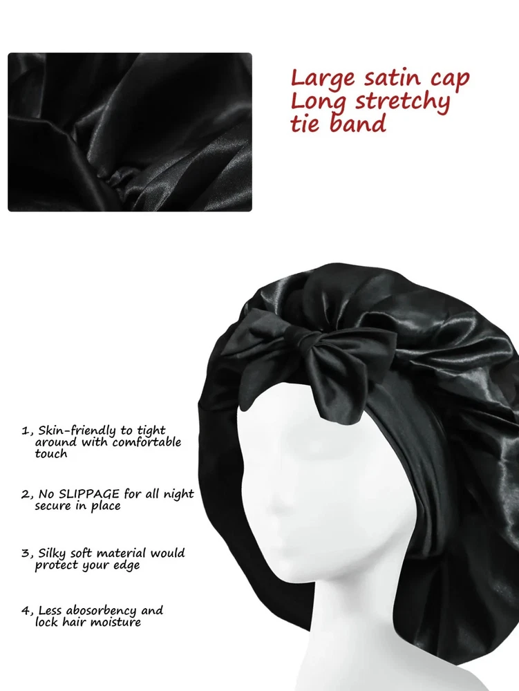 π Satin Bonnet Silk Bonnet with Tie Band β Adjustable Hair Bonnet for Sleeping β¨ Protect your hair while you sleep with the Satin Silk Bonnet with Tie Band ! Designed for comfort and hair care, this luxurious bonnet helps prevent frizz, breakage, and moisture lossβkeeping your hairstyle fresh and healthy. The adjustable tie band ensures a secure, custom fit for every head size, making it perfect for nightly use or travel. Product Details βοΈ Item: Satin Silk Sleeping Hair Bonnet Material: Smooth Satin / Silk-Like Fabric Type: Adjustable Hair Bonnet with Tie Band Color: Varies (commonly black, pink, beige, purple) Size: One Size Fits Most (adjustable) Usage: Sleep, Hair Protection, Nighttime Care Further Details π π€ Protective Satin Material: Smooth surface reduces friction to prevent hair breakage and frizz. π Adjustable Tie Band: Customize the fit for comfort and secure hold throughout the night. π Comfortable & Breathable: Lightweight fabric keeps hair cool without trapping heat. βοΈ Travel Friendly: Easy to fold and pack for trips, sleepovers, or overnight stays. π§ Versatile Use: Great for long hair, curly hair, braids, weaves, and natural styles. πͺ Gentle on Hair: Helps retain moisture and reduces split ends and tangles. Benefits π βοΈ Hair Protection While Sleeping: Keeps hairstyles neat and healthy β¨ Reduces Frizz & Breakage: Satin surface preserves hair texture π Adjustable Comfort: Tie band ensures perfect fit π Nighttime Essential: Comfortable for all-night wear π Portable & Stylish: Looks great and easy to carry π©π¦± Great for All Hair Types: Works with straight, curly, wavy, and textured hair Sleep in comfort and wake up with gorgeous hair using the Satin Bonnet Silk Bonnet with Tie Band β Adjustable Hair Bonnet for Sleeping , the perfect hair care accessory for your beauty routine! πβ¨