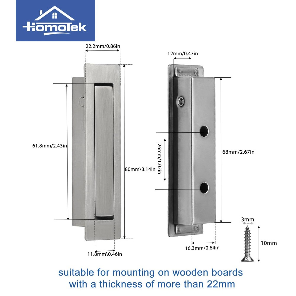 Recessed Pocket Door Pull Handle, Edge Flush Pull, Hidden Finger Pull, Modern Pocket Hardware for Sliding Door, 80x22x16mm, Stainless Steel 304 (Satin Nickel, 1pack) Premium Stainless Steel Build: Crafted from 304 stainless steel, the handle features a thickened panel for a robust and corrosion-resistant design. Its high hardness ensures longevity, while its sleek appearance adds a touch of elegance to any space. Comfortable Groove Design: The recessed pocket door pull handle's grooved design not only enhances its aesthetic appeal but also provides a comfortable grip for effortless and secure usage. Built to withstand prolonged use without loosening, it ensures smooth operation for years to come. Easy Installation with Quality Hardware: Designed for hassle-free installation, this pocket door edge pull handle comes with high-quality accessories, ensuring a secure and stable mounting. enjoy a quick and straightforward setup process without compromising on durability. Versatile and Stylish: With its versatile design, this flush pocket door pull handle complements various home decor styles, from modern to traditional. Its simple yet elegant appearance makes it a perfect match for any interior, adding a touch of sophistication to your space. Precision Craftsmanship for Smooth Finish: Through multiple meticulous processes, this handle undergoes precise surface treatment, resulting in smooth edges and corners. The seamless integration of form and function not only enhances its visual appeal but also ensures a comfortable and reliable grip. Recessed Pocket Door Pull Handle, Edge Flush Door Pull, Hidden Door Finger Pull Shipping We offer FREE shipping on all orders! We ship within Three business days of payment, usually sooner. We use a selection of shipping services such as UPS, FedEx, USPS etc. We only ship to the lower 48 states, no APO/FPO addresses or PO Boxes allowed. Local pickups and combined shipping options are not provided at this time. Return You can return a product for up to 30 days from the date you purchased it. Any product you return must be in the same condition you received it and in the original packaging. Please keep the receipt. Payment We accept payment by any of the following methods: PayPal Please pay as soon as possible after winning an auction, as that will allow us to post your item to you sooner! Feedback Customer satisfaction is very important to us. If you have any problem with your order, please contact us and we will do our best to make you satisfied. Contact Us If you have any queries, please contact us via ebay. We usually respond within 24 hours on weekdays. Please visit our eBay store to check out other items for sale! Thank you for shopping at our store.