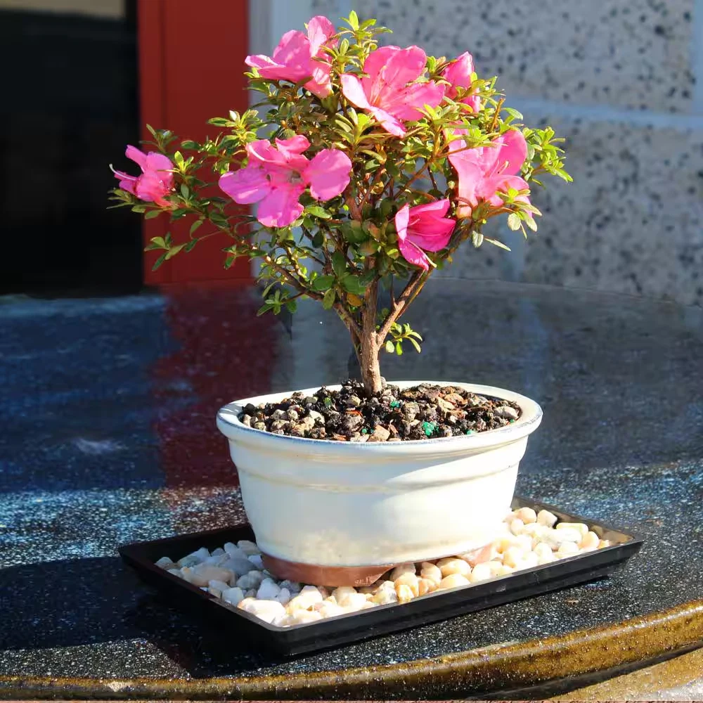 Satsuki Azalea Bonsai Tree Outdoor Plant in Ceramic Bonsai Pot Container, 5-Year