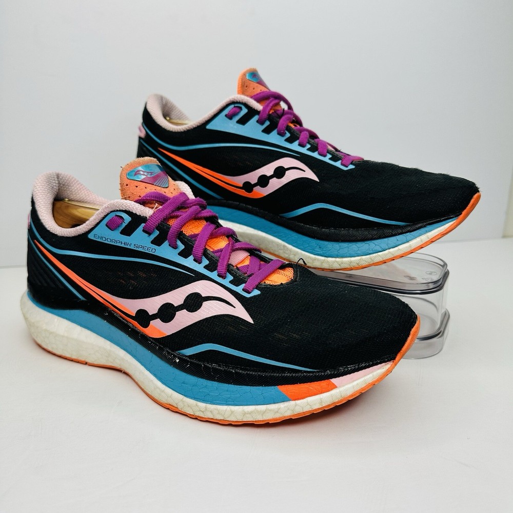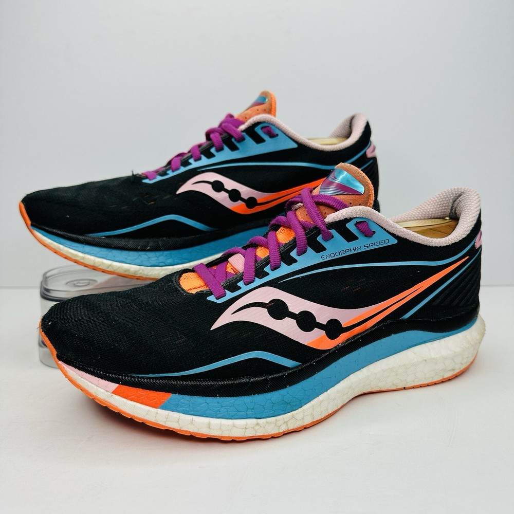 Fabric Type: Mesh UK Shoe Size: 7 Department: Women Lining Material: Synthetic EU Shoe Size: 40.5 Closure: Lace Up Seller Notes: “Great Used Saucony Running Shoes.” Color: Black Shoe Shaft Style: Low Top Insole Material: Foam Shoe Width: Standard Outsole Material: Rubber Occasion: Activewear, Casual Upper Material: Synthetic Accents: Logo Type: Athletic Country/Region of Manufacture: China Style Code: S10597-25 US Shoe Size: 9 Performance/Activity: Running & Jogging, Walking Season: Fall, Spring, Summer Style: Sneaker Features: Breathable, Comfort, Cushioned Product Line: Saucony Endorphin Model: Saucony Endorphin Speed Pattern: Solid Brand: Saucony