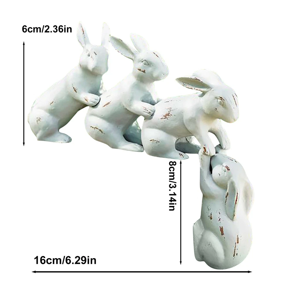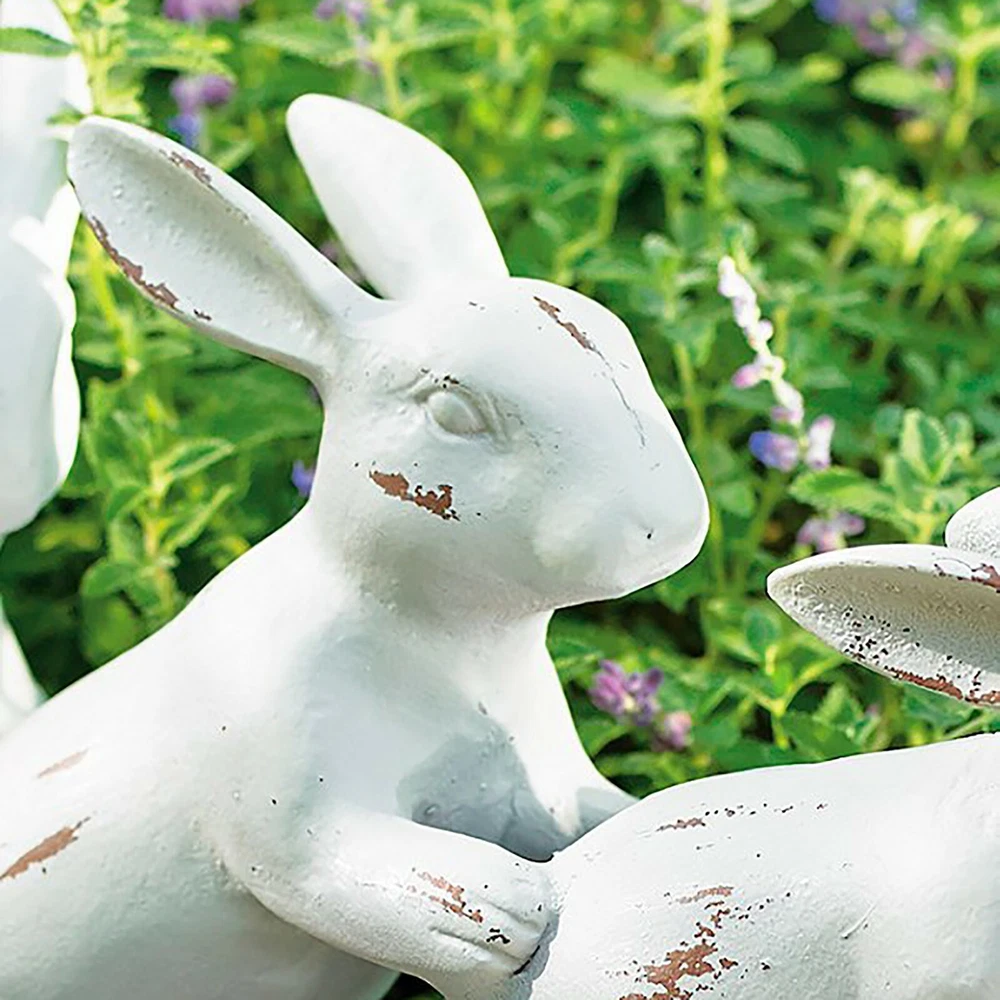Saved By A Hare Sculpture Bunny Decor Products description: We’ll let you in on a little behind-the-scenes fun: everybunny at Grandin Road had an absolute ball crafting a name for our Saved by a Hare Sculpture. And we must admit, we’re pleased as Easter punch! Possesses four times the charm and delight of any single accent and draws a crowd of broad smiles and lighthearted comments. Display on steps, porch edge, garden table, or even indoors—when other Easter decorations are winding down the season, these silly rabbits are warming up for their year-round fun. Artist’s hand-sculpted original is expertly sand-cast in aluminum Rabbits are securely hand-welded together Antique white powdercoat is sparingly distressed for a well-loved appearance These rabbits are made of resin, so they look lifelike. The whole ornament is made up of four rabbits and they are not removable, so you don't have to worry about any parts coming apart. Package include: 1 x sculpture On Dec 19, 2024 at 20:15:56 PST, seller added the following information: