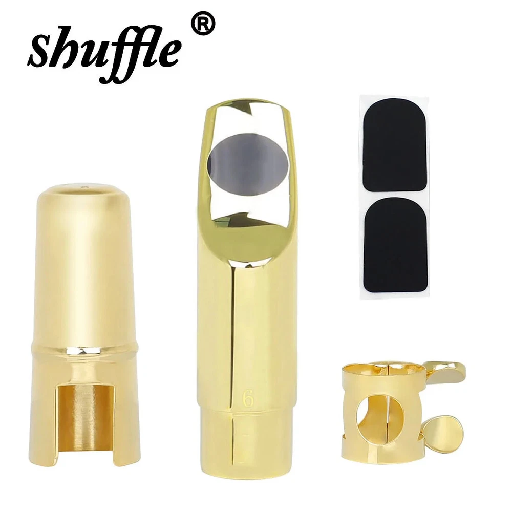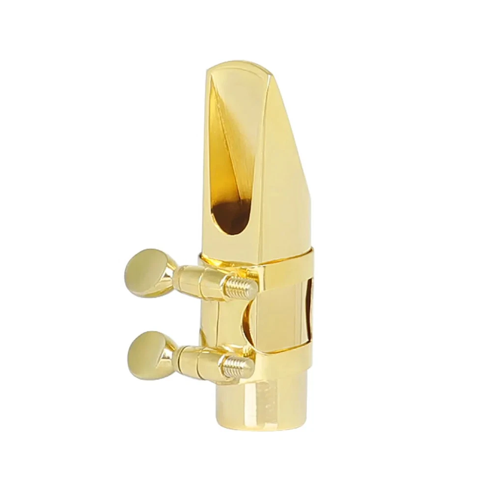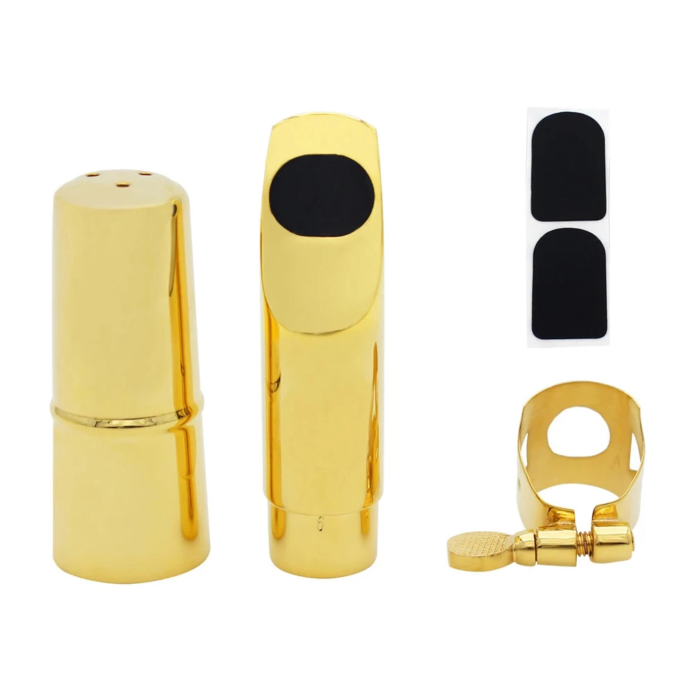 Soprano Saxophone Mouthpiece Metal Flute Head 5/6/7/8 Mouthpiece Strap Clip Cap Hand Polished Soprano Saxophone Accessories Description -Metal headjoint, hand-polished for a thick, pure sound and excellent resonance. -Reduced breath loss, more coherent, more transparent tone, longer use. -Original tooth pads can effectively protect the headjoint and teeth. Specification Product Name: Saxophone Headjoint Colour: Gold Material: metal Application: Soprano saxophone Packing list Saxophone head*1 Clip*1 Head cap*1 Pads*2 Only the above package content, other products are not included. Light shooting and different displays may cause the color of the item in the picture a little different from the real thing. The measurement allowed error is 1-2cm.