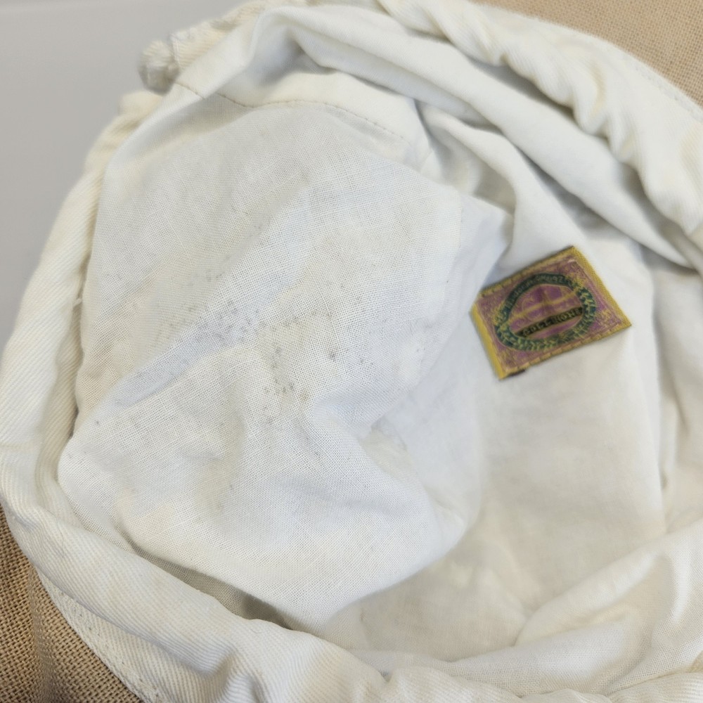 Scala Collezione Khaki Tan Canvas Bucket Beach Sun Hat Adjustable Floppy Cotton Good preowned condition with some staining on the lining. This hat has been washed and air dried.