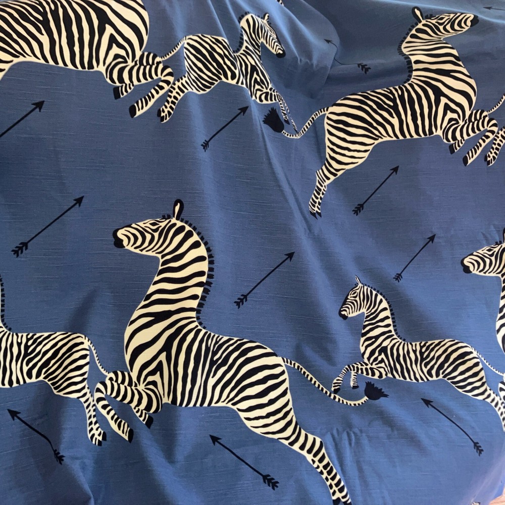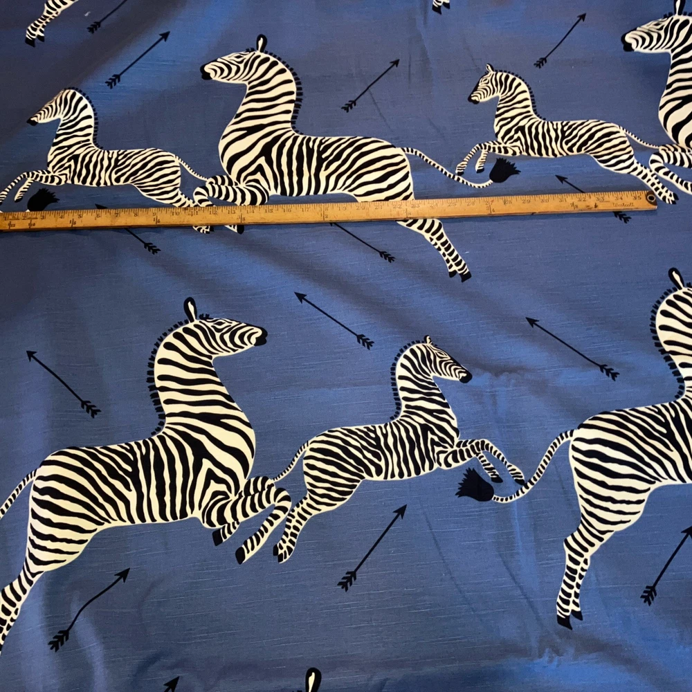 This Scalamandré zebra fabric is a fun and stylish choice for any project! The denim material feels durable yet soft, and the playful zebra print adds a unique, artistic touch. Great for upholstery, pillows, or even curtains—it’s versatile and high-quality. The blue shade is vibrant, and the cotton-linen blend makes it easy to work with. Perfect for anyone looking to add a bold, whimsical flair to their home decor or crafts!