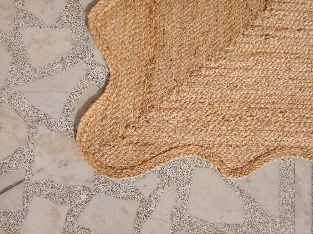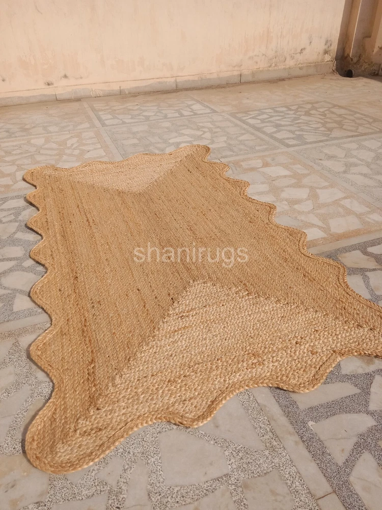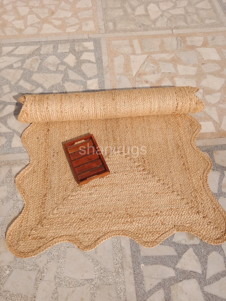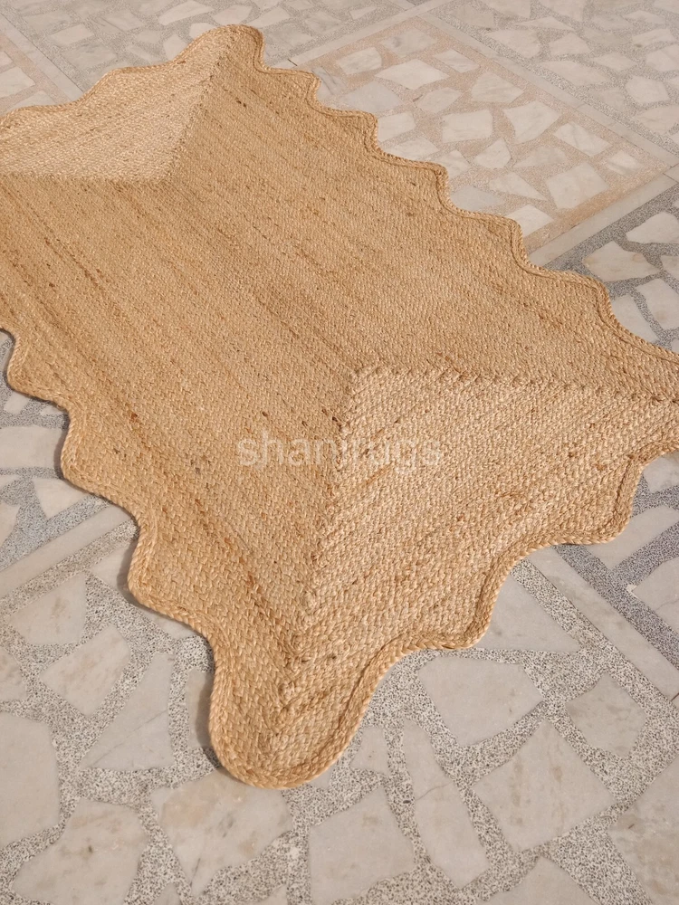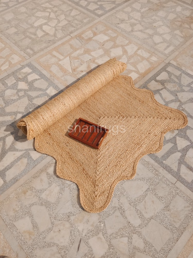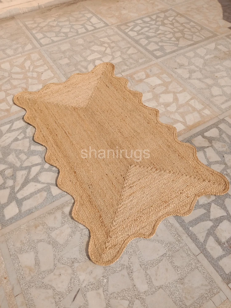 Scalloped Natural Jute Rug Braided Jute mat | Kitchen Rug Bath mat Wave Edge