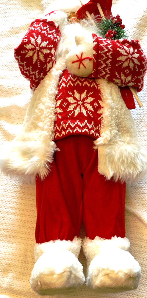 Scandanavian Santa 2 foot tall, Christmas Decor, Blue eyes White fur coat.