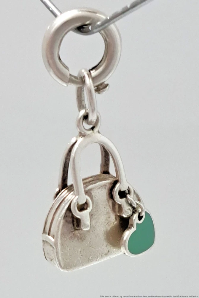Scarce Tiffany & Co. Blue Enamel Purse Bag Sterling Silver Charm or Pendant Scarce Tiffany & Co. Blue Enamel Purse Bag Sterling Silver Charm or Pendant Click images to enlarge Description Described & Photographed By: Mike NED 61557 Title: Scarce Tiffany & Co. Blue Enamel Purse Bag Sterling Silver Charm or Pendant Description: You can see the iconic Tiffany blue from a mile away! Make this yours today. Happy bidding! Here are the specifications Type of Jewelry: Pendant Metal: Sterling Silver Approx. Size or Length: .82 inches x .59 inches Stamps or Factory Markings: T & Co., 925 T & Co. 925, Italy Total Weight of Item: 6.54 grams Condition: Some minor nicks and bumps from being on a bracelet that can be easily buffed. Estimated size of package: 7.5in X 5.5in X 3.5in Estimated total weight of package: 8 oz Please Note: If the winning bidder would like to arrange to pick up their item at our store then please notify us by email & we will make the appropriate shipping adjustments. Condition: Pre-owned Condition Notes: Described & Photographed By: Mike NED 61557 Title: Scarce Tiffany & Co. Blue Enamel Purse Bag Sterling Silver Charm or Pendant Description: You can see the iconic Tiffany blue from a mile away! Make this yours today. Happy bidding! Here are the specifications Type of Jewelry: Pendant Metal: Sterling Silver Approx. Size or Length: .82 inches x .59 inches Stamps or Factory Markings: T & Co., 925 T & Co. 925, Italy Total Weight of Item: 6.54 grams Condition: Some minor nicks and bumps from being on a bracelet that can be easily buffed. Estimated size of package: 7.5in X 5.5in X 3.5in Estimated total weight of package: 8 oz Please Note: If the winning bidder would like to arrange to pick up their item at our store then please notify us by email & we will make the appropriate shipping adjustments. Payment Paypal Shipping Shipping Options: Domestic shipping: Weight based Shipping Charges. Domestic Carriers are: Usps Ground Advantage I will ship to: United States Weight: 8 oz. Shipping and Handling: Please check eBay's Shipping & Payment tab Customer Service Policy: Please note in bidding or buying this auction you are entering into a binding contract. In bidding or buying you are agreeing to all policies stated below and comply with Florida State laws. Sales Tax applies to all Florida sales unless you have a valid dealers license. Legal Shipping High value items require restricted delivery with only the addressee being able to sign for it. * Shipping is calculated by eBay and shown in the auction. Legal Jurisdiction. HessFineAuctions is a division of Hess Fine Art, and is registered in Pinellas County, FL, USA. It is agreed that all parties will abide by the laws of the State of Florida in all matters relating to this agreement. And that in the case of any dispute, the legal jurisdiction of resolution shall be Pinellas County, Florida. The buyer acknowledges that any items not returned within 30 days of receipt of the refund will be deemed appropriated by the buyer and buyer also acknowledges their intent to deprive from seller, either temporarily or permanently, the right to the property or the benefit from the property. Resale certificates must match buyer name or company and address * The auctions contain only what is described. Do not assume something comes with a used item if it is not stated in the auction verbiage. Many items will be marked with serial numbers or identifying numbers items may not be accepted for return if these numbers are not present. * Photographs often disclose condition far better than verbiage as many people have different ideas on what terms may mean. * If an identifying mark, inclusion or defect is visible in the images it is considered DISCLOSED to the buyer. * Gold items have been tested with a Kee gold tester M-509GM and tested as stated in the auction. * All Items are shipped insured. If an item has arrived damaged we will require images and a damage affidavit. CUSTOMS AND INTERNATIONAL BIDDER POLICIES International bidders - you are agreeing to the following when you place a bid with us: * If your total purchase including shipping exceeds $200.00 US and you pay with a credit card then your only delivery option is UPS signature delivery. This is because credit cards require both a signature and tracking. * If you pay with PayPal and the total price including shipping is less than $750.00 US then we can ship USPS to most countries. Please contact us with eBay?s message system before you pay for an amended invoice. * The following applies if you are shipping to or from these countries. CANADA, Australia, Belgium, Brazil, Croatia, Denmark, France Germany, Great Britain and Northern Ireland, Israel, Netherlands New Zealand Spain and Switzerland, Estonia, Finland, Gibraltar, Hungary, Italy, Latvia, Lithuania, Luxembourg, Malaysia, Malta, Portugal, and Singapore. We will be able to offer you USPS International shipping if you are paying with PayPal and the item and shipping are less than $750.00 US. We may be able to ship 1st Class USPS International if you are shipping to or from the countries listed above. * If you wish your item sent to a colleague with a US address we are of course willing to do so but the address must be verified with PayPal Credit card company and in the eBay invoice. * We declare all items for the winning bid amount. * It is common for countries to charge some form of customs duties, taxes, VAT, or brokerage fees on items being shipped from the USA. These costs, along with country-specific importing rules and delays caused by customs, are the buyer?s responsibility. * We do not falsify customs documents to assist you in evading your lawful taxes. Hess Fine Auctions Hess Fine Auctions can be reached during working hours of 9 to 5 PM EST. Legal Shipping Vendio Images: More than just a pretty image. 250+ Mobile Responsive & Active Content Free Listing Templates with Vendio Sales Manager. Vendio provides powerful selling automation for