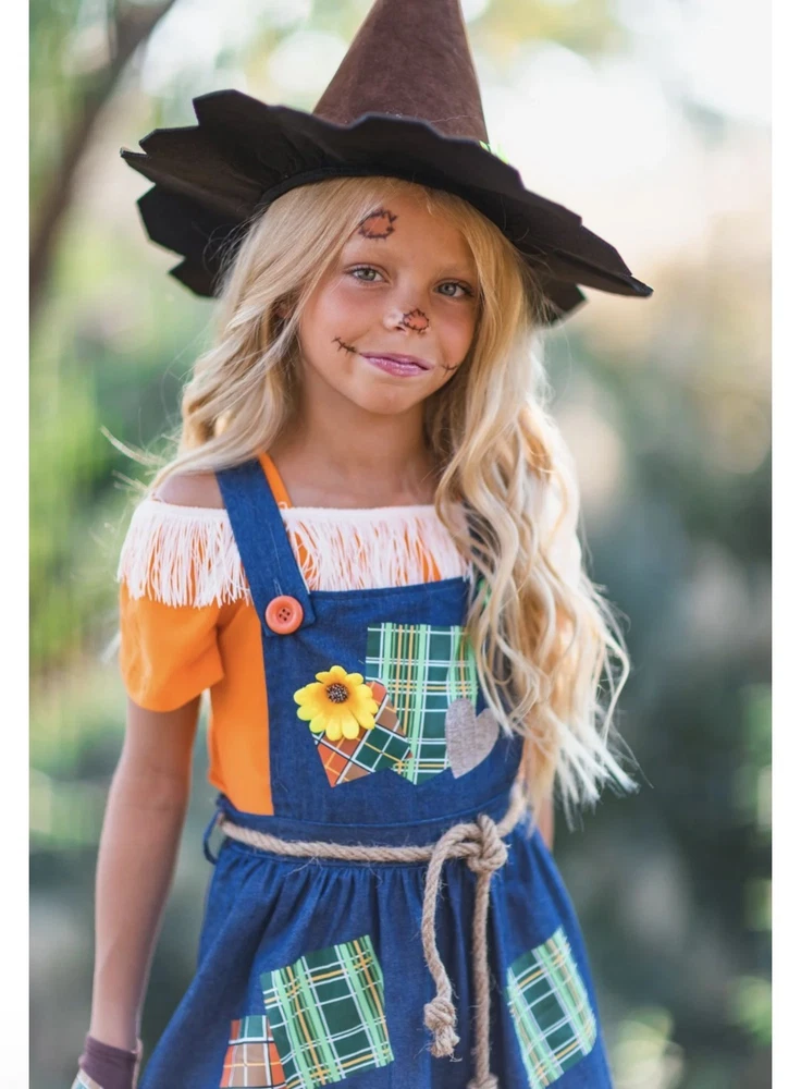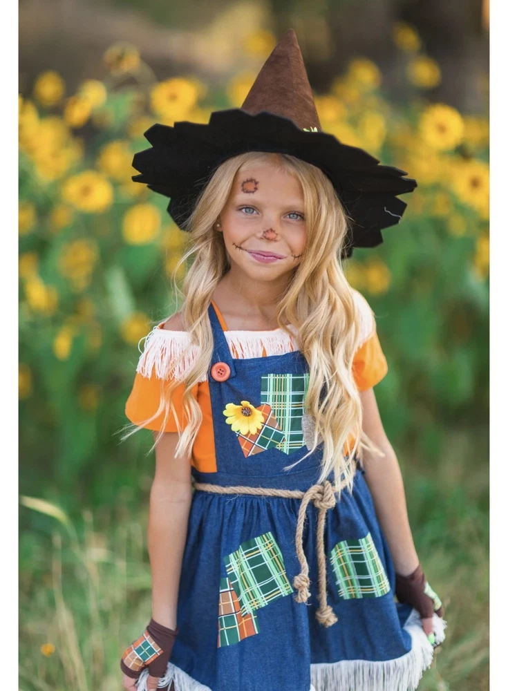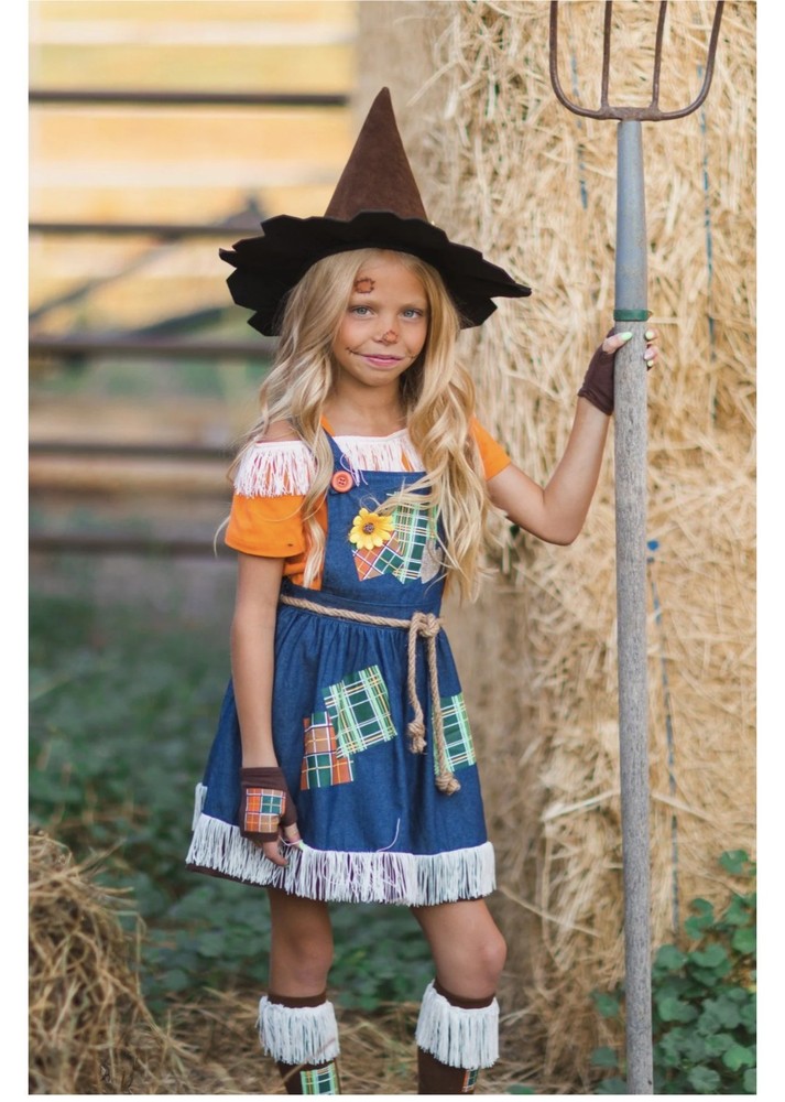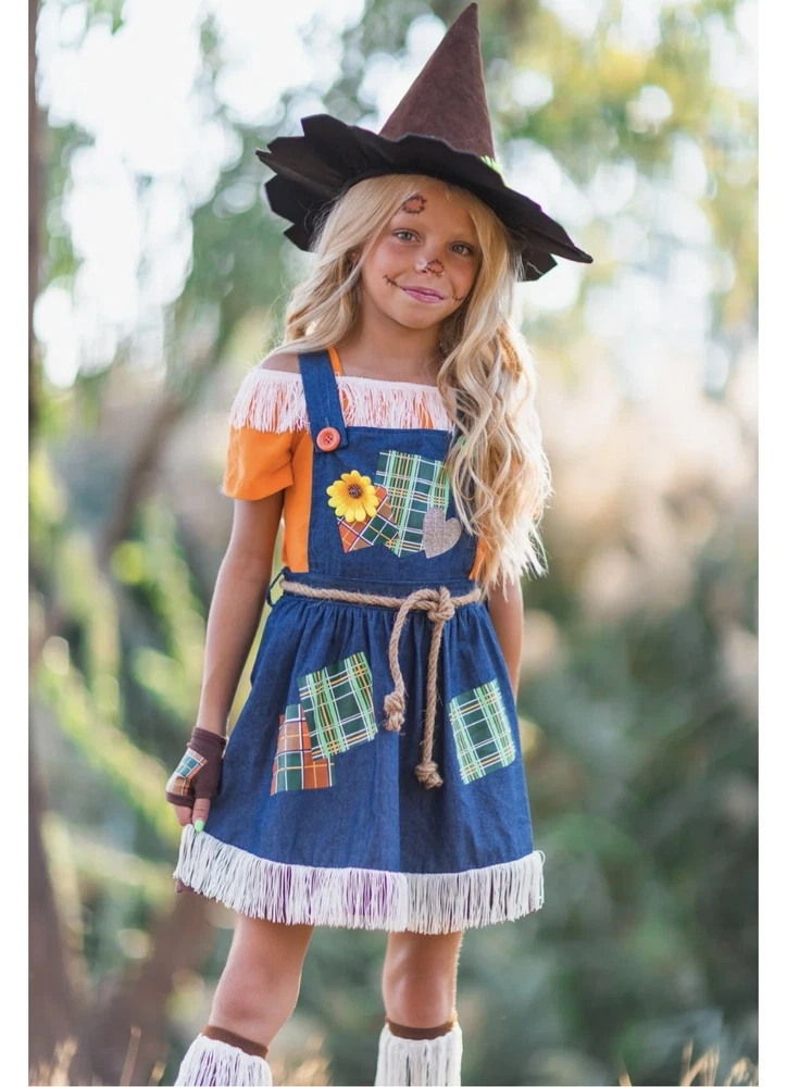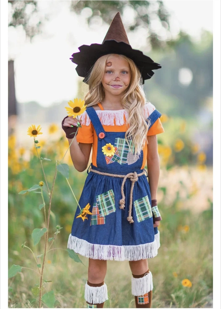 Scarecrow Costume for Girls Toddler Tween 5-Piece Set Sizes 12M-14Y