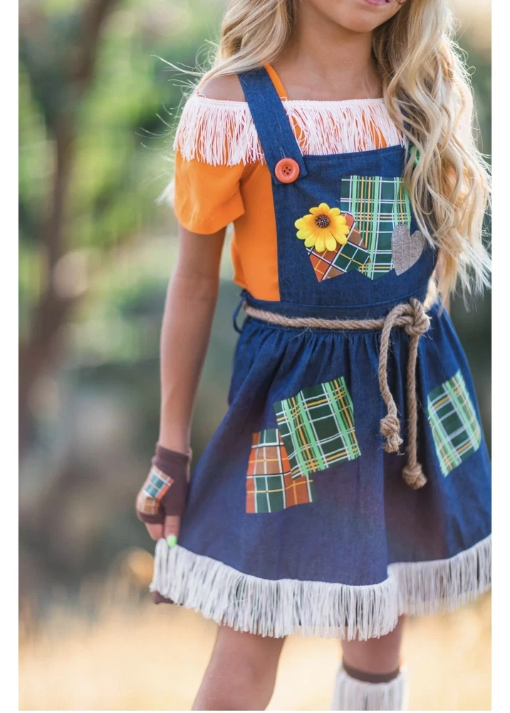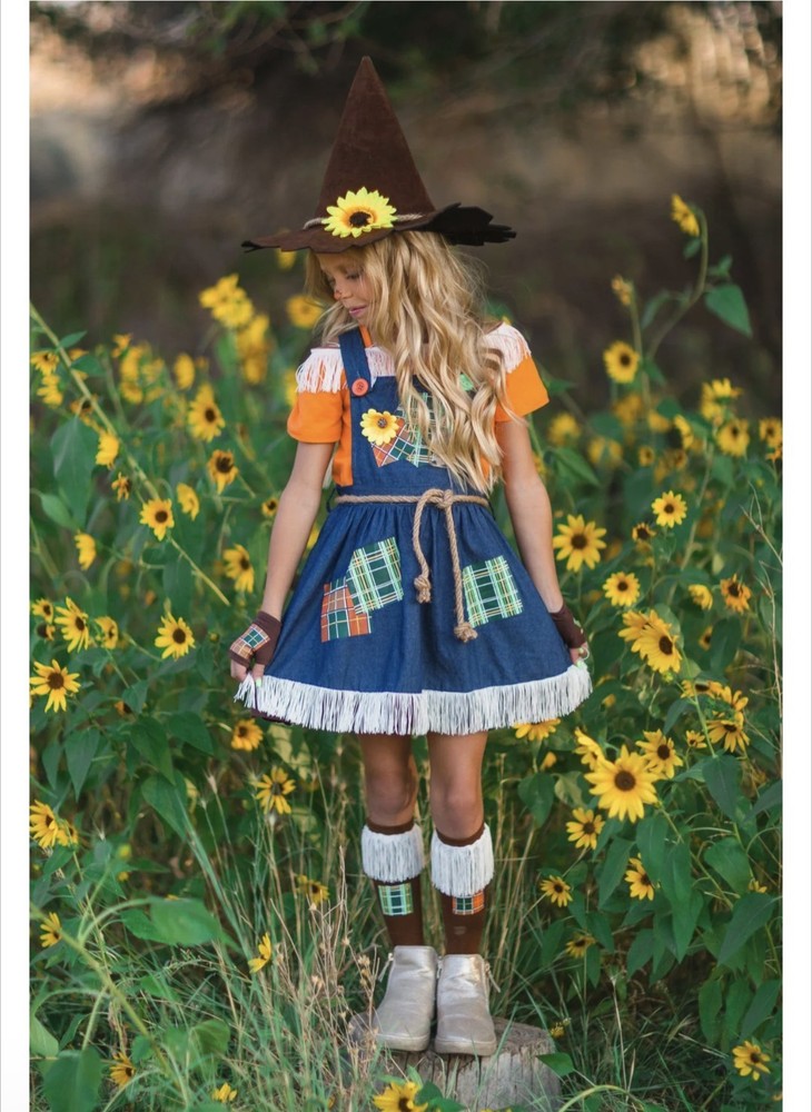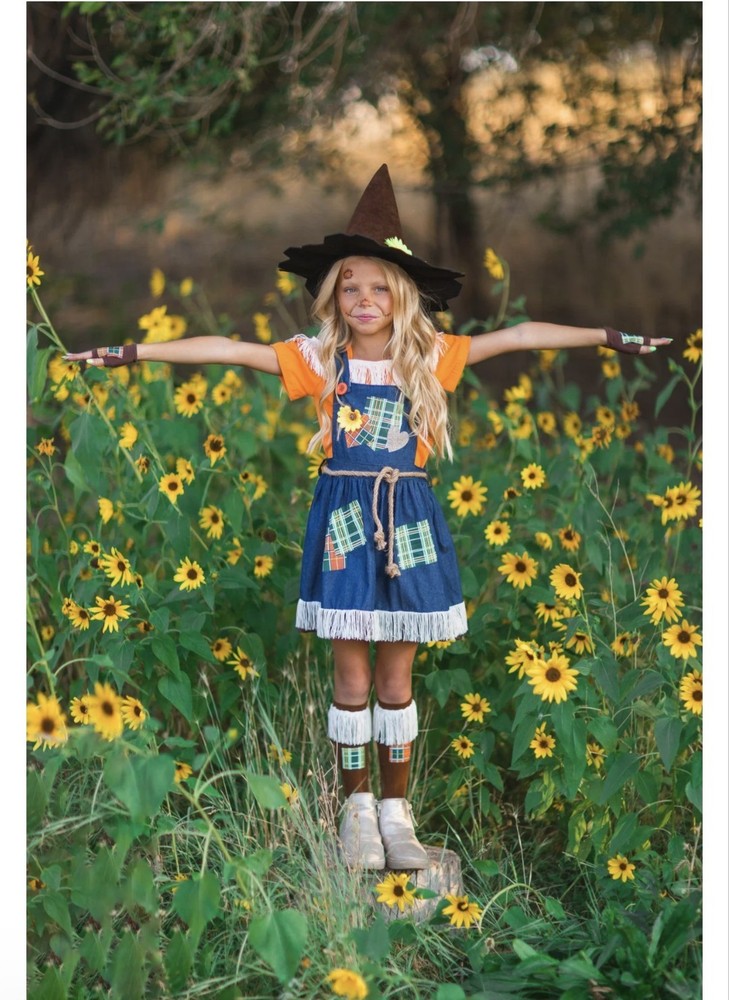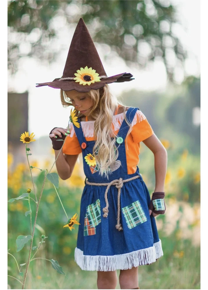 Scarecrow Costume for Girls Toddler Tween 5-Piece Set Sizes 12M-14Y