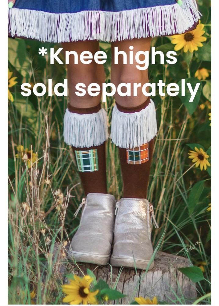 Includes cold shoulder top, matching jumper dress, hat, rope belt and fingerless gloves. Complete the look with our matching knee highs! Sold separately, available here!