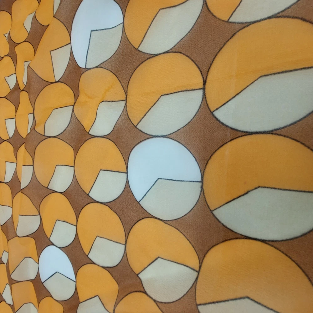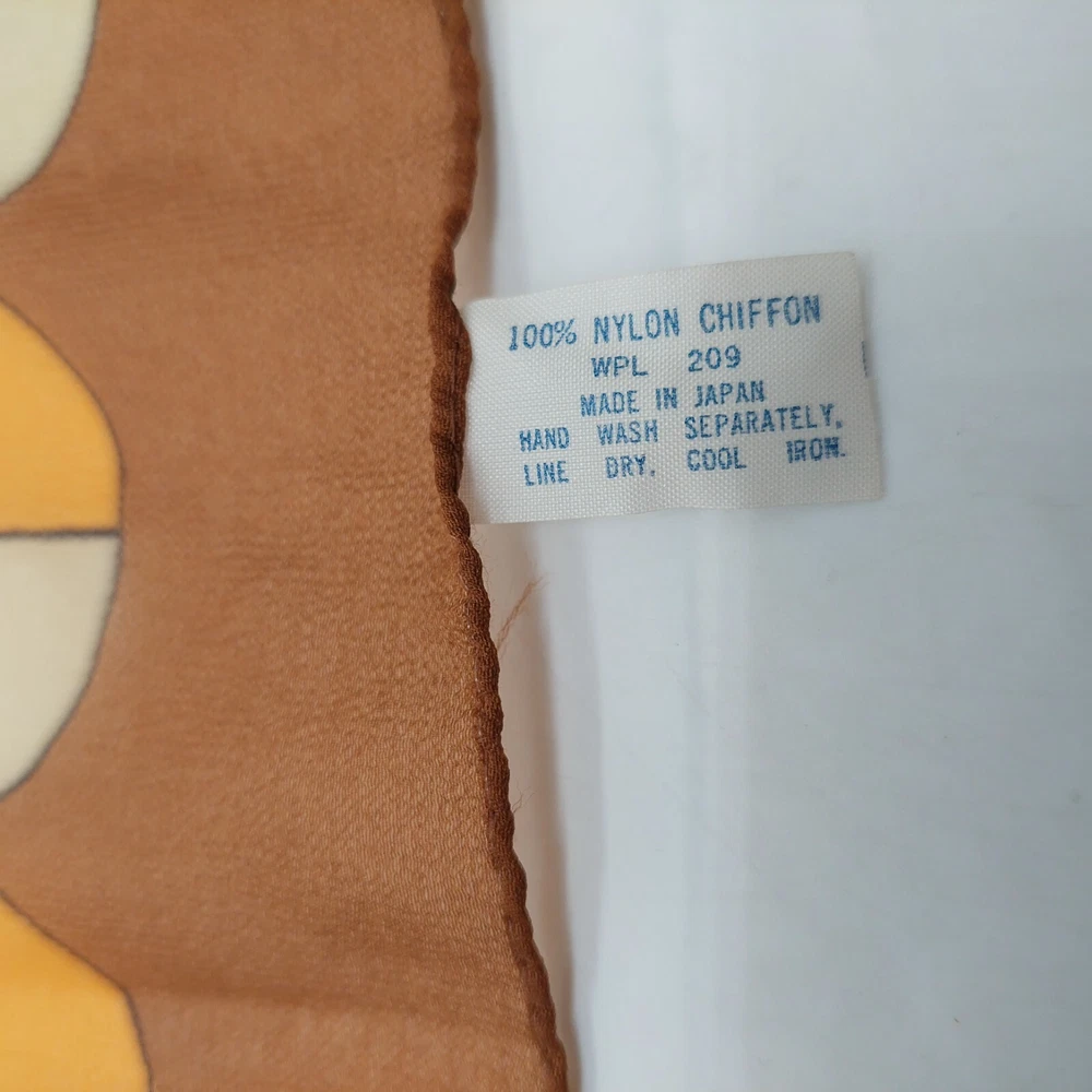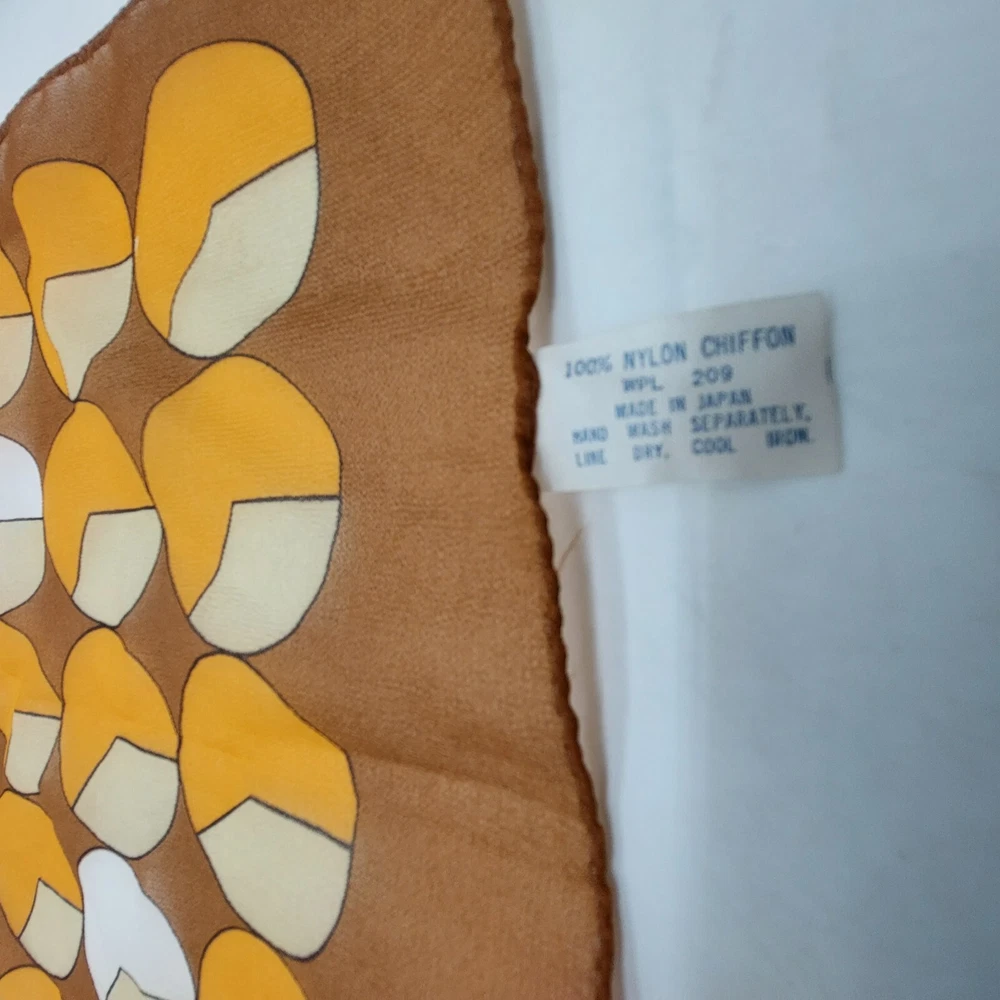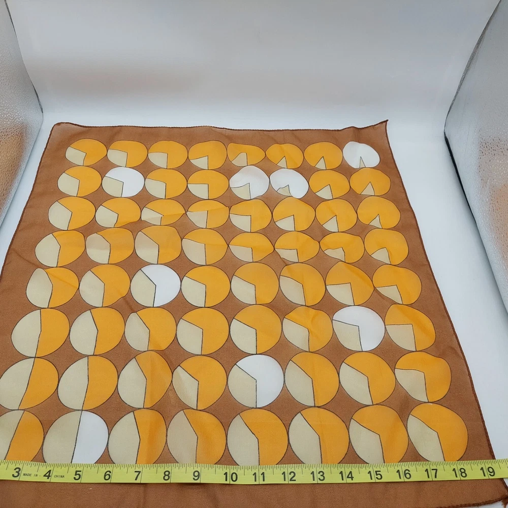 Scarf Brown Yellow White Circles Square Vintage 19" Nylon Chiffon Japan