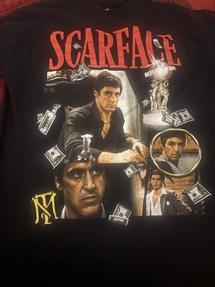 Show off your love for the iconic movie Scarface with this limited edition Al Pacino T-Shirt. The black cotton shirt features a graphic print of the legendary actor and is machine washable for easy care. With a regular fit and short sleeves, this shirt is perfect for any fan of the film. The shirt is available in size medium and is tagless for added comfort. The breathable material ensures that you stay cool and comfortable all day long. This Scarface Al Pacino shirt is a must-have for any movie enthusiast and is sure to make a statement.