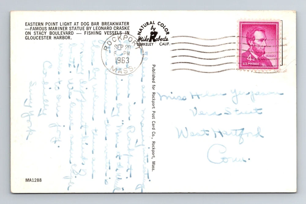 Scenic Lighthouse View, Gloucester Harbor, Vintage Postcard