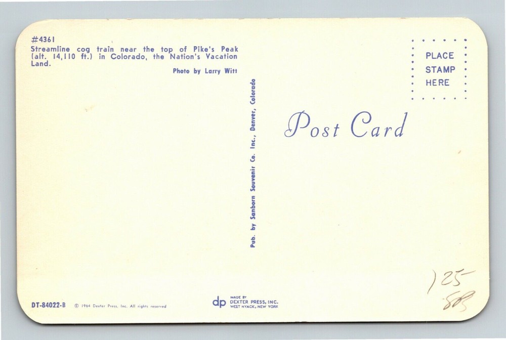 Scenic Pikes Peak Colorado Streamline Cog Train Mountain View Vintage Chrome Postcard