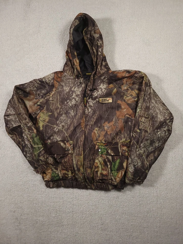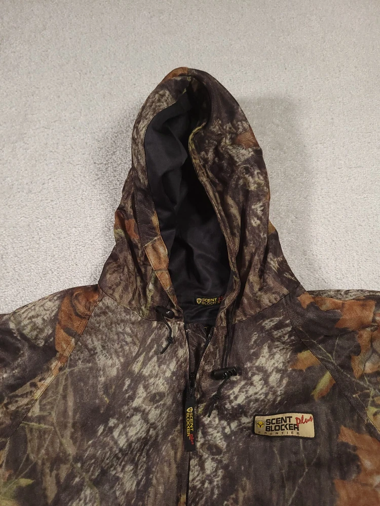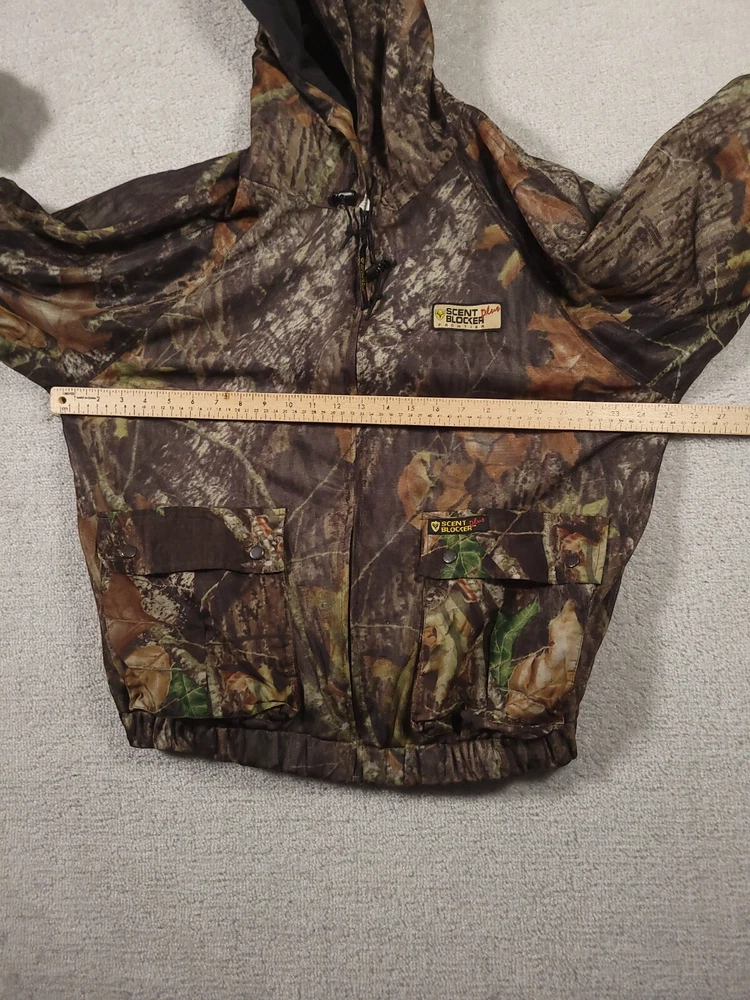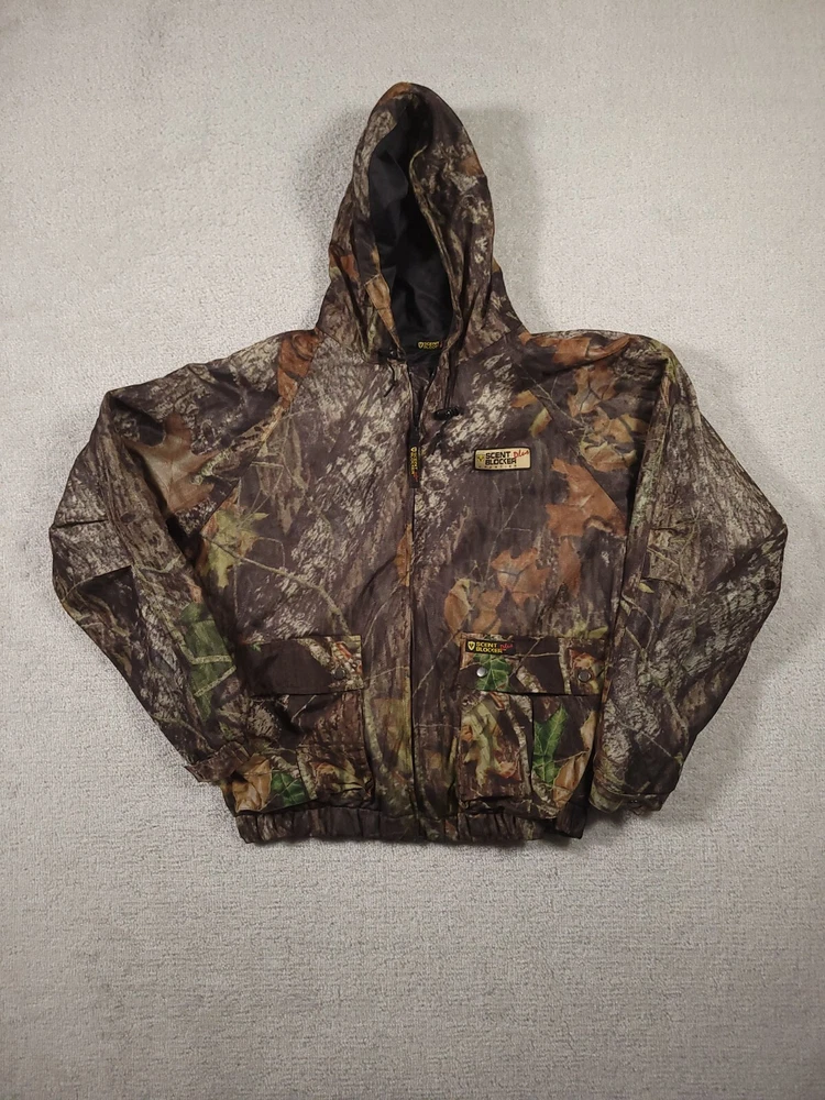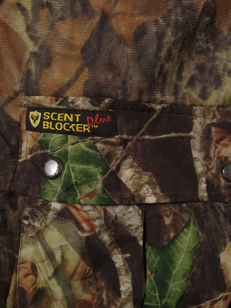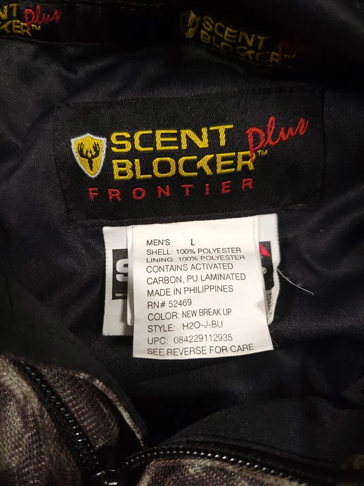 Pattern: Mossy Oak Break Up Size: L Gender: Men Brand: Scentblocker Seller Notes: “Good used condition” Material: Polyester Features: Scent Control, Water Resistant, Windproof, Pockets Color: Camo Size Type: Regular Country/Region of Manufacture: Philippines