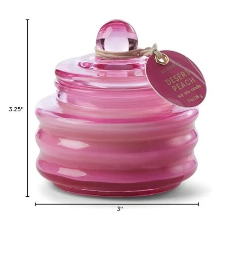 BEAM CANDLE COLLECTION - Luxe scented candles in mini artisan glass jars with a vintage ribbed design and a gorgeous pop color. Each candle comes with a hang tag and is perfectly sized for gifting! Desert Peach Top Notes: Peach, Bergamot, Cassis Buds, Pineapple Middle Notes: Neroli, Linden Blossom, Plum, Sweet Base Notes: Amber, Lactonic, Coconut, Sweet creates candles thoughtfully designed to set the tone for memories made within your spaces. We start with a story and build around it to create collections that add warmth and nostalgia to your home. Our candles are designed and sourced intentionally, featuring a mix of materials, textures, shapes, and unique fragrances to set the scene for beautiful memories made by candlelight. BEAM CANDLE Luxe scented candle in a glass jar and lid with a vintage ribbed design and a gorgeous pop color; Beam collection candles come with a hang tag and are perfectly sized for gifting APPROXIMATELY 20 HOURS OF CLEAN BURN TIME Artisan glass vessel filled with 3-ounces of our soy wax blend free of formaldehyde, phthalates, and animal-sourced ingredients; burn times may vary due to environment; for best results, place candle away from drafts, always trim wicks, and let the wax pool fully develop DESERT PEACH Fragranced with a luxurious blend of peach, bergamot, neroli, amber, and coconut; fragrance blends are crafted with alluring fragrance oils and are designed to be both complex and balanced DESIGNED WITH REPURPOSING IN MIND With every design, we ensure that each vessel can be repurposed when the wax runs out; set on a vanity and repurpose as a jewelry catchall MADE BY , A Nashville-based company known for creating thoughtfully designed candles; each candle is made and sourced intentionally and features a mix of materials, shapes, and unique fragrances to set the scene for beautiful memories made by candlelight