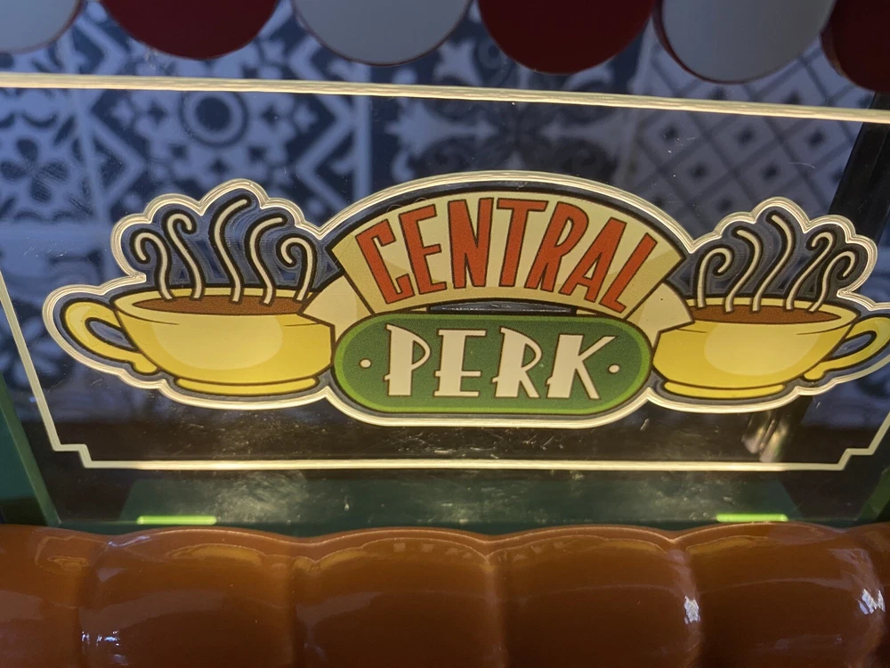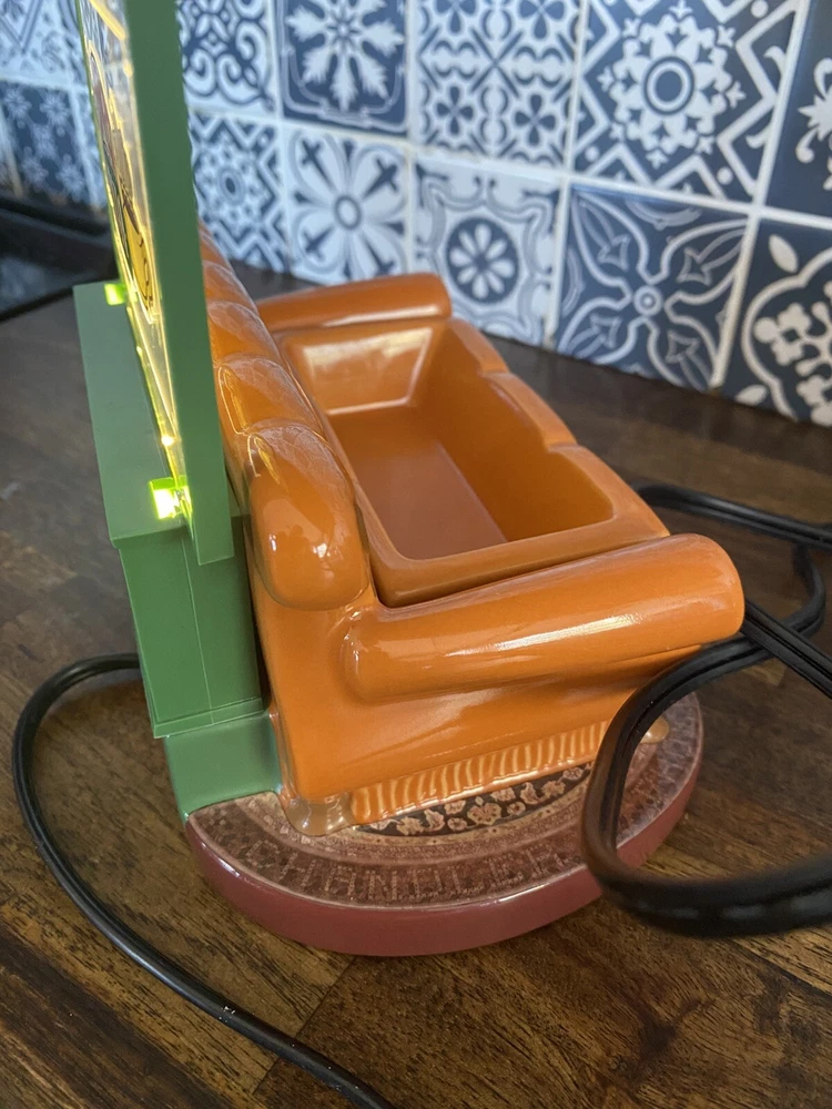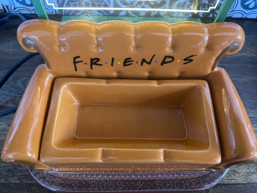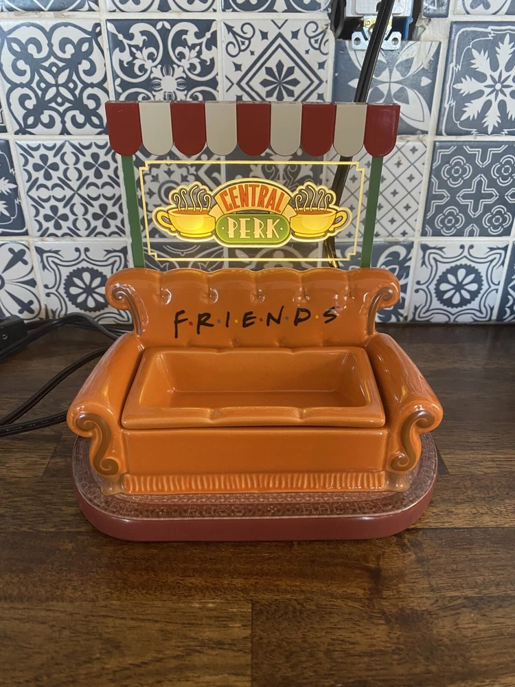 Excellent condition, no box Friends become family at the Central Perk coffee shop. Inspired by the Friends Television Series, this warmer has details fans will love from a light-up Central Perk™ sign to the classic logo and orange couch. Grab your fave coffee order so you can have a seat and get caught up on the latest news. Wattage: Element Finish: Reactive glaze + Hand painted + Glows when lit Dimensions: 8" tall Material: Ceramic