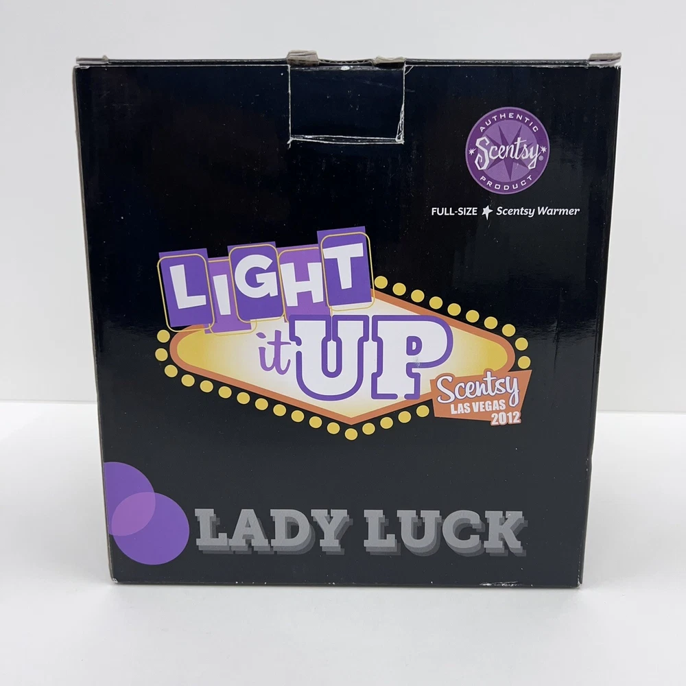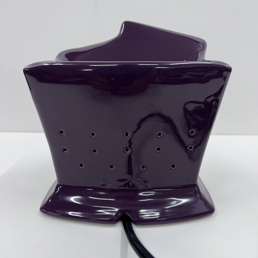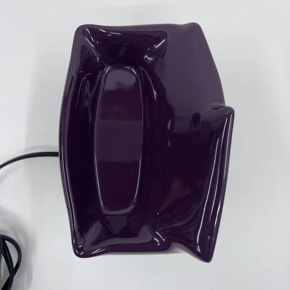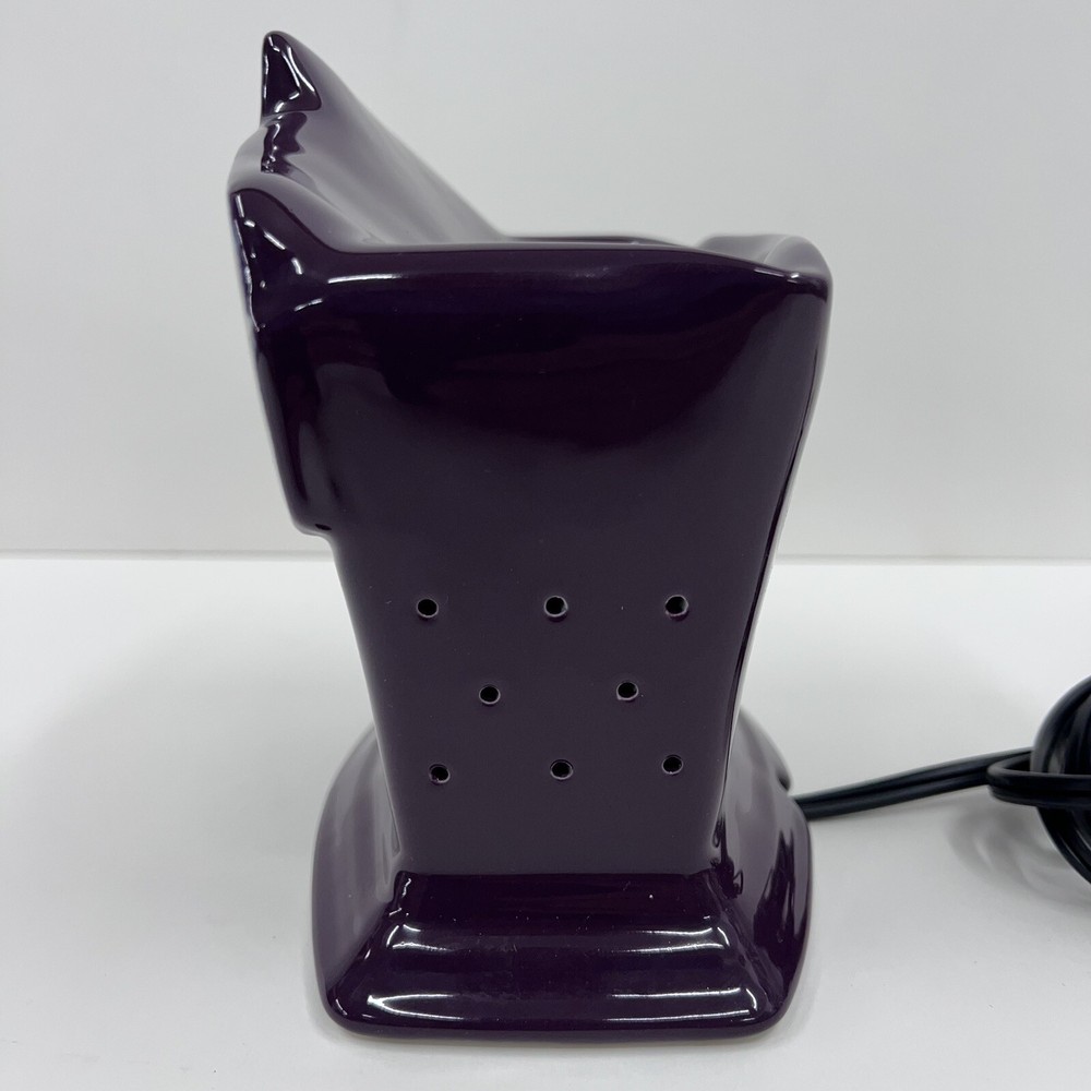 The Scentsy Light It Up Las Vegas Convention Full Size Warmer is a ceramic candle oil/wax warmer in a vibrant purple color, specifically designed for wall plug-ins. This art deco style warmer, with embellishments and a glossy finish, is perfect for creating an aromatherapy atmosphere in any room. The 2012 model weighs more than 40 oz and features a bowl design, making it ideal for adults looking to enhance their home fragrance experience with the Las Vegas theme.
