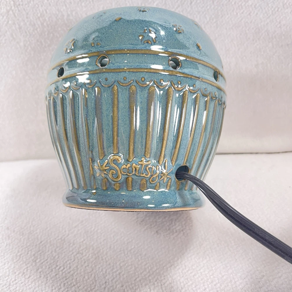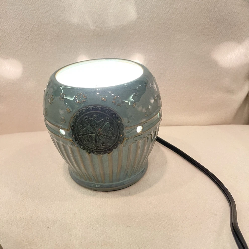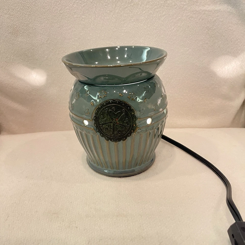 Scentsy VICTORIA Wax Warmer Burner Full Size Teal Blue with Flower Seal RETIRED. Condition is Used. Shipped with USPS Ground Advantage.