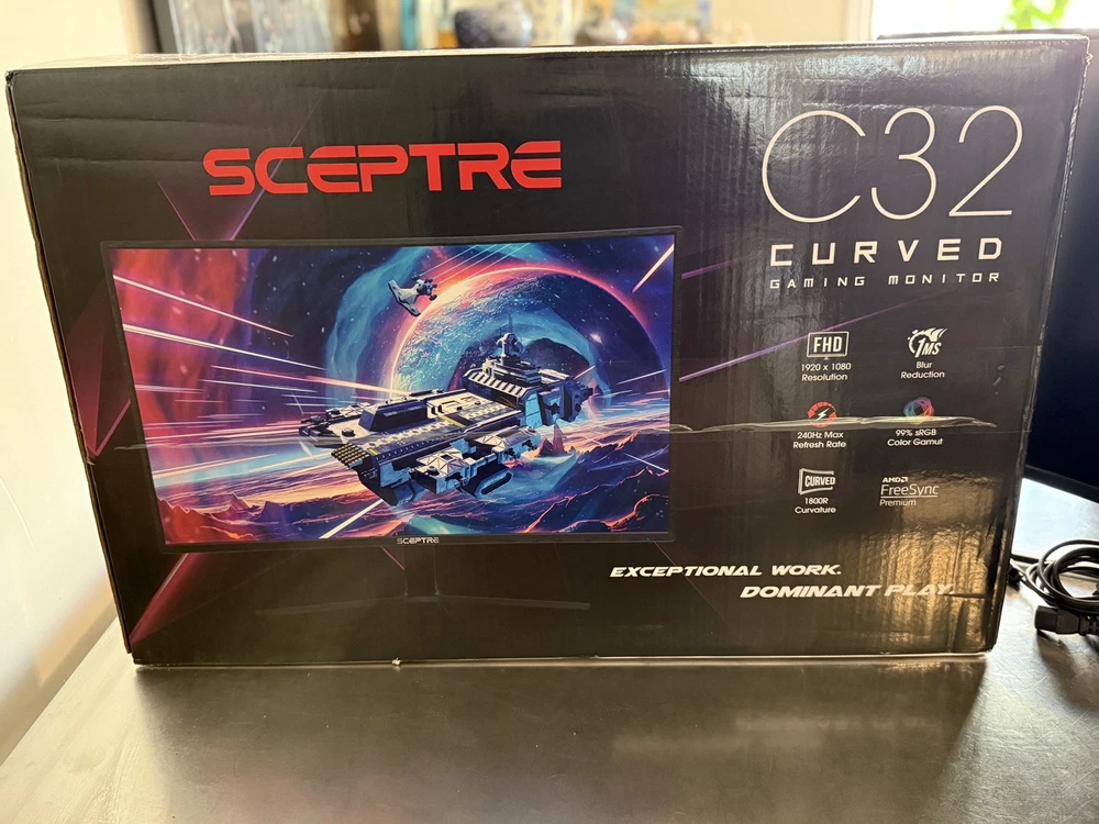 Sceptre C32 Curved Monitor – High Resolution – Like New (Complete in Box) Sceptre C32 curved monitor in like-new condition. Lightly used and fully functional with a clean, clear display and immersive curved screen. Ideal for gaming, work, or everyday use. Condition: • Like new / gently used • No scratches, cracks, dead pixels, or display issues • Tested and working perfectly Included: • Sceptre C32 curved monitor • Original box • All original cables • User manual • Warranty card