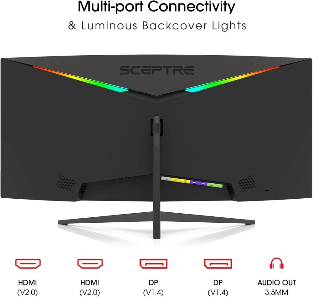 About this item 1ms MPRT: Colors fade and illuminate instantly with a 1ms response time, eliminating ghosting and piecing together precise imagery during action-packed scenes and gaming. Luminous Backcover Lights: A colorful LED light illuminates the back cover of the monitor, delivering a uniquely modern design. WQHD Resolution: At 5 million pixels, Wide Quad HD Resolution (3440 x 1440) display resolution provides you with the next level of refined, and detailed picture over the current 1080P standard. 21:9 Ultrawide: See more and do more with an ultrawide monitor. 21:9 provides you with 30% more screen space versus the conventional monitor. With an ultrawide resolution of 3440 x 1440, expand your performance and productivity.
