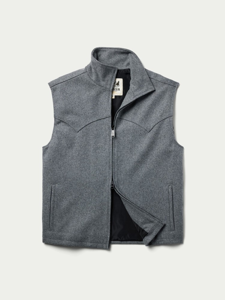 Men's Size XL Color Heather Gray MSRP$165+ Brand new with tag and orginal packgeing All sales are final, please make sure it's the right size before ordering Fast shipping via UPS Ground A comfortable and dependable wool vest that is dapper enough for an evening out on the town and functional enough for mornings in the field. Shell: 22 oz. Melton Wool (85% Wool, 15% Nylon) Premium Taffeta Lining 2-Way Zippered Front 2-Pocket Front Interior Chest Pockets Classic Fit, True to Size Designed in Texas, Imported