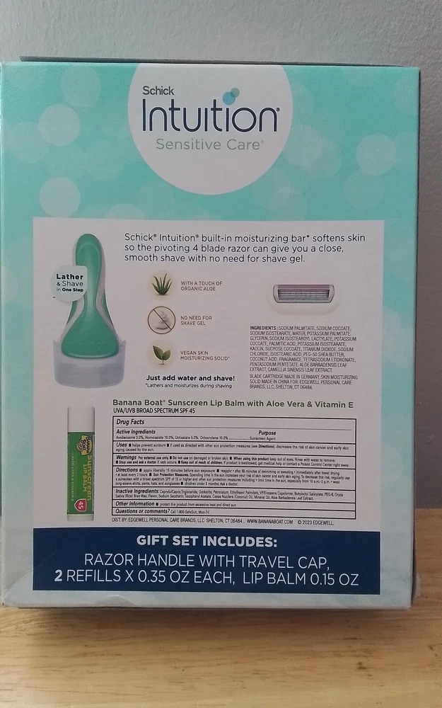 Schick Womens Intuition Gift Set includes 1 Razor Handle, 2 Refills, 1 Lip Balm