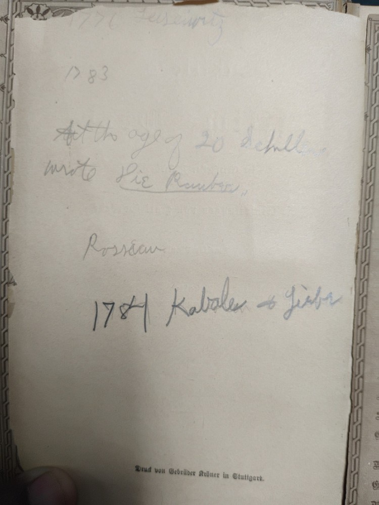 This vintage hardcover book titled "Schillers Famtliche Werke: Die Rauber, Fiesco, Kabale und Liebe" or ''Schrillers Complete Works: The Robbers, Fiesco, Intrique and Love'' by Schiller. Written in German this book falls under the genre of fiction and is a collection of works by Schiller that includes famous titles such as "Die Rauber," "Fiesco," and "Kabale und Liebe." A valuable addition to any book collection, this vintage hardcover edition offers readers a timeless literary experience in the original language. Schillers Famtliche Werke: Die Rauber, Fiesco, Kabale und Liebe VTG Hardcover This book is in acceptable shape for its age. There are loose pages and other signs of wear in this old book with an unknown date. See the photos for more.