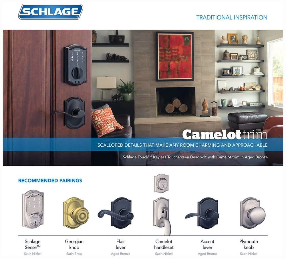 Powered by Frooition Top Products Kitchen Bathroom Lighting Fans Hardware Decor & Organization Schlage BE365-CAM Camelot Electronic Keypad Single Cylinder Deadbolt Overview Item Description Electronic Keypad (No Handleset) Function: This electronic deadbolt allows you to lock and unlock the deadbolt without the use of a key. It has the versatility of keyless operation while still retaining the functionality of keyed entry, having both a keypad and lock cylinder on the outside and a thumb turn on the interior. It's perfect for front doors, side or back doors, and garage entry doors. Installation is easy, all you need is a screwdriver and a little time. The set is designed to fit standard prep doors and most installations should take less than an hour. A Lifetime Mechanical and Finish Warranty gives you the piece of mind that this product will be looking good and functioning smoothly for as long as you own it.(Finish warranty does not include Oil Rubbed Bronze because it is a living finish and it is expected to patina over time). BHMA/ANSI Grade 2 certified which indicates excellent performance across a range of residential applications. This product is built from high-quality materials to give you exceptional security. Features: Exceeds criteria for ANSI/BHMA Grade 2 certification Patented turn lock allows you to lock the deadbolt from the outside without a key Convenience of keyless access and customizable with up to 19 personalized codes to fit your security needs Buttons illuminate when you press any button from the exterior Installs with a screwdriver into standard door prep in approximately 30 minutes (No wiring necessary) Powerful battery will last for three or more years Specifications: Backset: Adjustable to 2-3/8" or 2-3/4" Cross Bore: 2-1/8" Edge Bore: 1" Door Thickness: 1-3/8", 1-1/2", 1-5/8" or 1-3/4" (use Schlage 02-007 thick door kit for 1-7/8" - 2-1/2" thickness) Handing: Left, Right, Reversible Product Weight: 1.50 lbs. Faceplates Included: Round corner, drive-in Strike Plates Included: Round corner Why Choose BuildInc? OUR PROMISE TO YOU About Us At Build, we promise to provide the best selection we can, most competitive pricing, and unmatched customer service. Our store has quality home improvement products from trusted manufacturers like Moen, American Standard, Delta, Kraus, Kichler, Progress Lighting, Schlage, Kwikset, Baldwin, Broan, NuTone, Air King, and Rev-A-Shelf. With over 200,000 home improvement products for you to choose from, we have just what you need to get your project done. Fast & Free Shipping We promise to make it our priority to get you your items as fast as we can. We ship from 440 warehouses around the country, ensuring that your product will get to you as soon as possible. We know you're eager to get your hands on your new purchase, we would be too. As a bonus, most items ship for free. Returns We are happy to accept returns of unused or defective items for a refund within 30 days from the date of delivery. For returns outside 30 days, please contact our Customer Service team to go over our options. For full details, please view the Shipping and Payments tab above. To initiate a return simply go to the eBay Returns Portal and submit a return request. We ask that all items be returned with all original components via a traceable method. Once your return is received and processed, we will quickly get your refund or replacement issued. If for any reason you are unsatisfied with your purchase or for product or warranty questions, please contact Customer Service team for assistance. More Items! View more great items InSinkErator H-Wave-SS Instant Hot Water Dispenser - Nickel $499.00 PRofLO PF1103 Lavatory Pedestal Base Only (Sink Sold Separate) - White $52.20 Newport Brass 1-617 2 & 3 Way Diverter Valve Rough In With 1/2" Npt Outlet $230.30 Moen 4792 1/2 Inch Sweat (Copper-to-Copper) Roman Tub Rough-In $147.13 About Us | Shipping | Returns | Contact Us | FAQ | Collections | Special Offers! Powered by Frooition Frooition Frooition | No-js Template | eBay design, eBay store design, eBay shop design, eBay template design, eBay listing design (ver:froo_no_js) This listing is currently undergoing maintenance, we apologize for any inconvenience caused.