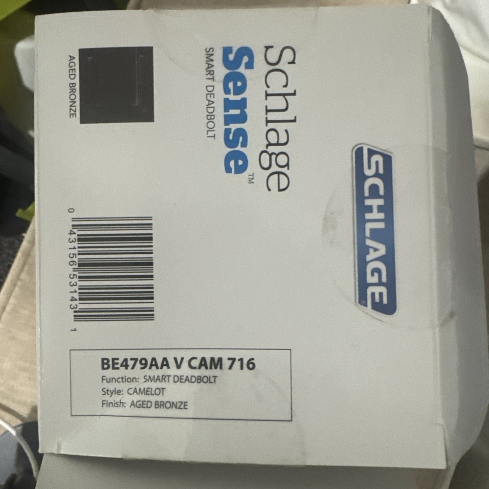 Finish:Aged BronzeItems Included:DeadboltModel:CamelotMaterial:BronzeType:DeadboltMPN:BE479 CAM 716Mounting:UniversalBrand:SchlageFixings Supplied:NoSuitable For:Entire Door, Front Door, Front Entrance Door, Garage Door, Residential, Side Entrance Door/BackdoorFeatures:ElectronicNumber in Pack:1Color:BrownItem Width:3 in