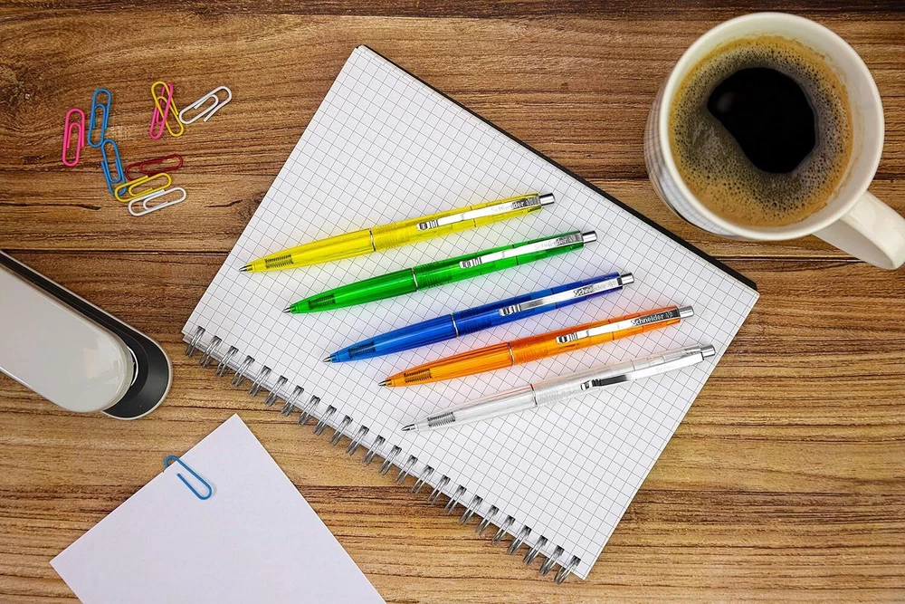 Further Details Title: Schneider 132000 K20 Icy Colours Ballpoint Pen (Ink Colour: Blue, Medium, Indelible) Pack of 20, Assorted Single Condition: New Release Date: 04/03/2012 Type: Retractable Ballpoint Pens Style: Bundle mit Kugelschreiber,blau Description: Retractable ballpoint pen with a powerful body in transparent colours, sturdy metal clip, replaceable refill with jumbo stainless steel tip, ISO 12757-2 H waterproof. Fit-compliant mechanism that uses various inks Brand: Schneider Item Weight: 10g Color: assorted colours Material: Plastic Metal Size: 1 count (Pack of 20) Age Level: Adult Number of Items: 20.0 count Dimensions: 14.5 x 1.1 x 1.4 cm; 10 Grams Closure: Retractable Ink/ Lead Colour: Blue Nib Type: Medium Features: Refillable Grip Type: ergonomically Item Length: 145mm Item Width: 11mm Item Height: 14mm MPN: 132000 Schneider Icy Colours Retractable Ballpoint Pens in Assorted Housing Colours, Ink Colour: Blue, Line Width: Medium, Indelible in accordance with ISO 12757-2 Pack of 20 Decorative ring, push button and clip are made of metal. Ideal hold for clipboards, notebooks or blocks The wear-resistant stainless steel tip ensures that the paste supply can be used completely and without smearing The slightly curved body of the pen ensures an ergonomically comfortable writing position Thanks to the clever plug and play system, the pen can be refilled with different refill formats Missing Information? Please contact us if any details are missing and where possible we will add the information to our listing.