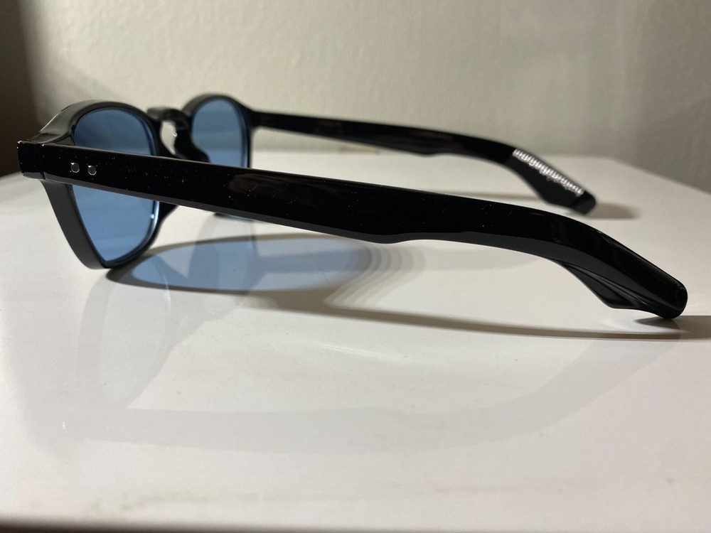 Philosophical style men's sunglasses with black frame and blue lenses. Great price, no joke.