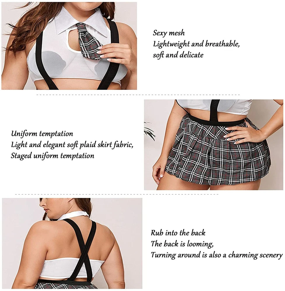 Description: Material: This Sexy school girl outfit costume is made of 95% polyester, 5% spandex, the high quality fabric is soft, stretchable and comfortable to wear Sexy: The spaghetti strap bra and panties match with the plaid printed pattern tie and grid hem skirt, giving you a dreamlike feeling Easy to Wear: Sexy schoolgirl lingerie for women ,Plaid midi Skirt with Lace Hemline .The plaid skirt has elastic waistband, easy to find perfect size and easy to put on and take off Occasions: Ideal for both indoor and outdoor events, perfect for home wear, vacation, holiday, travel, seaside, beach, honeymoon, dating and daily life, etc Ideal Gifts: Perfect for Valentine's Day, bridal gift, honeymoon, anniversary, etc., giving you passion and good mood, making you more charming and beautiful Package Includes: 1 set sexy lingerie inkfrog terapeak
