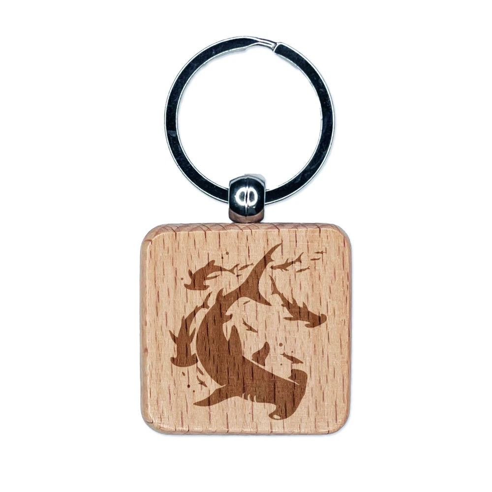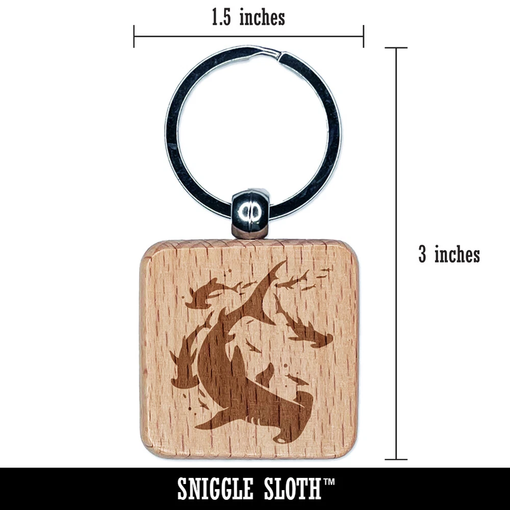 School of Hammerhead Sharks Engraved Wood Square Keychain Tag Charm