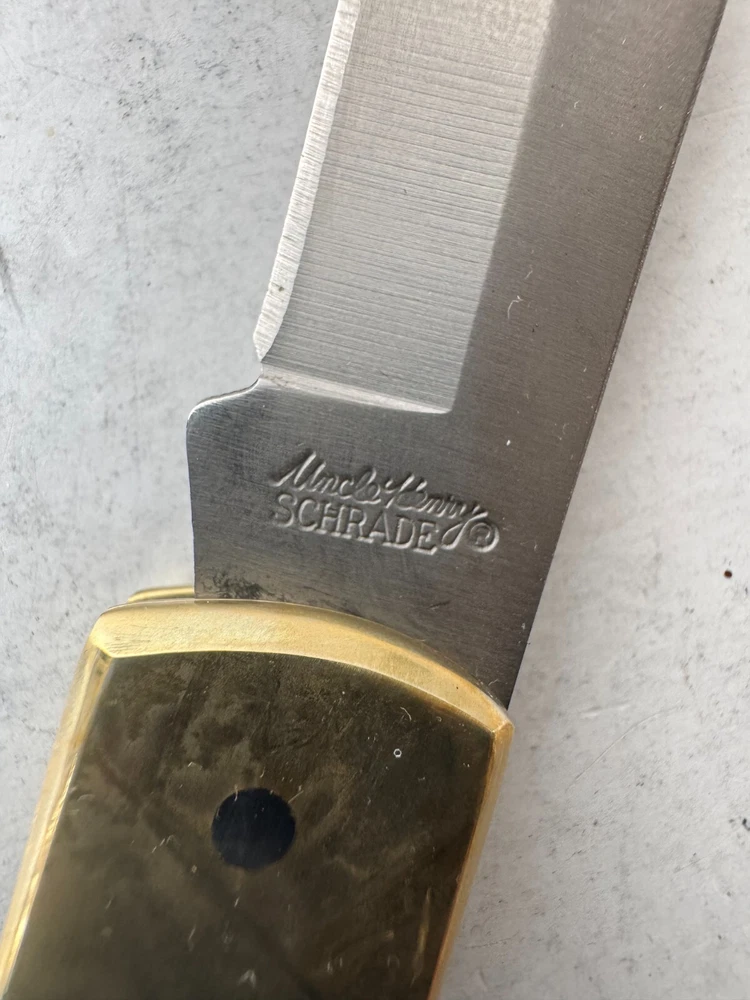 Schrade Uncle Henry LB5 Folding Pocket Knife Smokey Lockback with Leather Sheath Description Schrade Uncle Henry LB5 Folding Pocket Knife Smokey Lockback with Leather Sheath. Product Detail • Brand : Schrade • Model : Schrade Uncle Henry LB5 • Blade Color : Silver • Type : Pocket Knife Please message me if you have any questions.