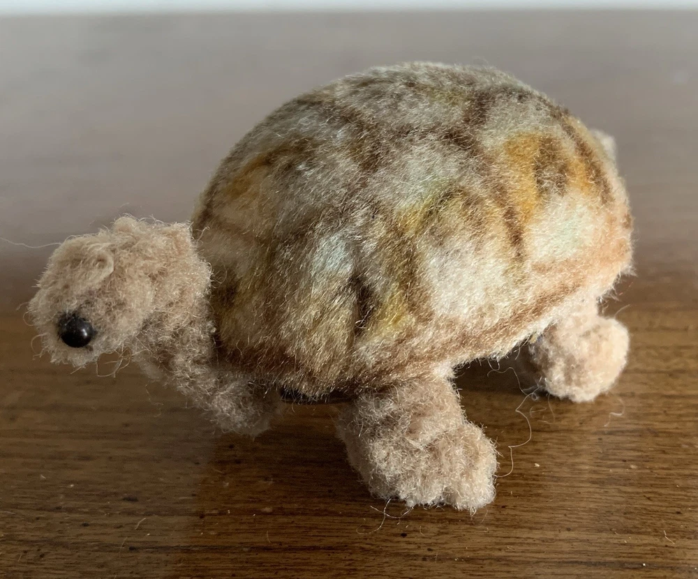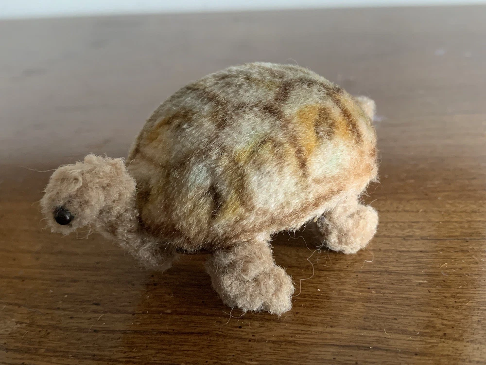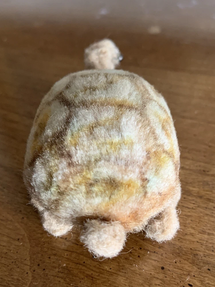 Cute little vintage turtle Noah's Ark by Schuco Germany Mohair with bendable chenille legs & head 7 cm or 3 inches no ID 1950s 1960s Black eyes Very good overall vintage condition as shown with minimal age wear