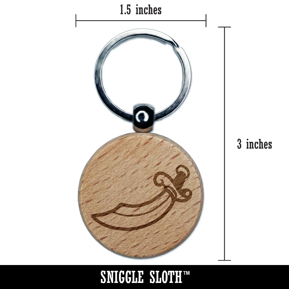 Scimitar Curved Pirate Sword Engraved Wood Round Keychain Tag Charm