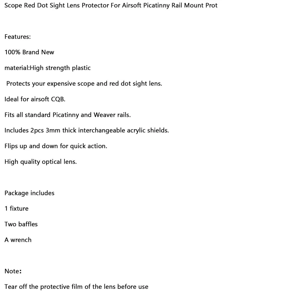 .22 to .50 Laser'Calibrator Laser Calibration Pen Red Laser Pointer Bore Sighter 19.57 USD Free shipping NEW Carrying Handle Picatinny Rail Mount Iron Sights Removable Adjustable 22.79 USD Free shipping Folding Back Up Iron Sight Flip Up Front Rear Set Picatinny Rail KAC300 20.87 USD Free shipping Rifle Scope Sunshade Protective Caps Honeycomb Mesh Scope Protector 44/50/56MM 14.87 USD Free shipping G34 G35 G37 G38 G39 G22 G23 G26 G27 G33 Blue NIGHT SIGHTS FOR GLOCK G17 G19 USA 14.79 USD Free shipping Low Profile Flip-up Folding Back Fiber Iron Sights Fit Picatinny/Weaver Rails 21.87 USD Free shipping Front & Rear Fiber Optic Sight for Taurus G3 w/o G2C G2S PT111 PT140 TX22 15.87 USD Free shipping Universal Mount Red Dot Optic Mounting Platform Plate Base Mount For GLOCK 18.87 USD Free shipping Front/Rear NIGHT SIGHTS FOR GLOCK G17 G19 G22 G23 G26 G27 G33 G34 G35 G37 G38 14.79 USD Free shipping Low Profile Tactical 45 Degree Offset Angle Mount Picatinny Weaver Rail UE 12.85 USD Free shipping Folding Flip Up Iron Sight Back Up Sights Set 20MM Front Rear Picatinny Rail 20.79 USD Free shipping Tactics Red Dot Sight Base Clip Mount Plate Gasket For Glock RMR/VENOM/MROS YU 15.79 USD Free shipping A Fantastic Shop Send us a message Our Store Seller Profile Feedbacks Save this seller Contact Scope Red Dot Sight Lens Protector For Airsoft Picatinny Rail Mount Prot Scope Red Dot Sight Lens Protector For Airsoft Picatinny Rail Mount Prot Features: 100% Brand New material:High strength plastic Protects your expensive scope and red dot sight lens. Ideal for airsoft CQB. Fits all standard Picatinny and Weaver rails. Includes 2pcs 3mm thick interchangeable acrylic shields. Flips up and down for quick action. High quality optical lens. Package includes 1 fixture Two baffles A wrench Note: Tear off the protective film of the lens before use About US About Our Items We strive to describe all items accurately and thoroughly, with the utmost care and attention to detail. However, to ensure a mutually satisfactory transaction, we kindly ask for your assistance in thoroughly reviewing the item description and photos, and addressing any questions before placing a bid. Customer Satisfaction We stand behind our commitment with exceptional service, a 100% money-back guarantee, and a dedication to customer satisfaction. I am readily available to address any inquiries or concerns you may have, both before and after your purchase. Our aim is to ensure your shopping experience is enjoyable and that you're delighted with your purchase. Feedback Your feedback is crucial to our business's success. If you're satisfied with your purchase and the service you received, we would greatly appreciate your positive feedback, along with an overall Detailed Selling Rating (DSR) of 5. Please take a moment to leave us positive feedback. Our eBay account is set up to automatically reciprocate positive feedback once yours is received. If you're considering leaving neutral/negative feedback or opening an eBay/PayPal case, we encourage you to reach out to us immediately. We're committed to resolving any issues to the best of our ability. Shipping Parcel will be shipped using Standard shipping method. For security purposes, items will be shipped exclusively to the confirmed address on Paypal. Please ensure your Shipping address is up to date before proceeding with payment. Estimated delivery time within the United States ranges from 3 to 10 business days, depending on your location. Returns We accept returns within 60 days from the date the buyer receives the item. If the item is found to be defective upon receipt, the customer has up to 30 days from the date of receipt to request an exchange for a new item or a refund. For returns due to a change of mind, we accept items in their original selling condition. However, if the package has been opened due to a mistaken order, it does not qualify for our return policy. Please note that the buyer is responsible for covering the cost of return postage. If you encounter any issues, please reach out to us via eBay message, and we'll respond within 24 hours. .22 to .50 Laser'Calibrator Laser Calibration Pen Red Laser Pointer Bore Sighter 19.57 USD Free shipping Folding Back Up Iron Sight Flip Up Front Rear Set Picatinny Rail KAC300 20.87 USD Free shipping NEW Carrying Handle Picatinny Rail Mount Iron Sights Removable Adjustable 22.79 USD Free shipping Rifle Scope Sunshade Protective Caps Honeycomb Mesh Scope Protector 44/50/56MM 14.87 USD Free shipping G34 G35 G37 G38 G39 G22 G23 G26 G27 G33 Blue NIGHT SIGHTS FOR GLOCK G17 G19 USA 14.79 USD Free shipping Folding Flip Up Iron Sight Back Up Sights Set 20MM Front Rear Picatinny Rail 20.79 USD Free shipping Tactics Red Dot Sight Base Clip Mount Plate Gasket For Glock RMR/VENOM/MROS YU 15.79 USD Free shipping Telescope Vertical Corrector Tool Set Optic Leveler Combo Mount for Rifle YU 14.79 USD Free shipping Tactical Fixed Front Rear Iron Sight Set For DD Rapid Backup Black UE 21.79 USD Free shipping Universal FAST OMNI FTC QD 2.26 Mount Magnifier Mount For G33 G43 G45 V3XM V6XM 45.79 USD Free shipping Fiber Optic Front Sight Rear Combat Red Dot Fiber Sight for Standard Glock YU 14.79 USD Free shipping G17 Pistol Picatinny Rail Red dot Scope Sight Polymer Base Mount For Hunting YU 13.87 USD Free shipping