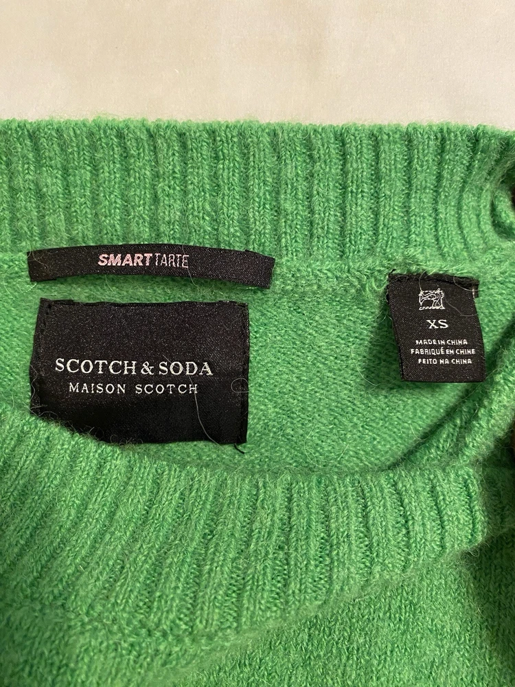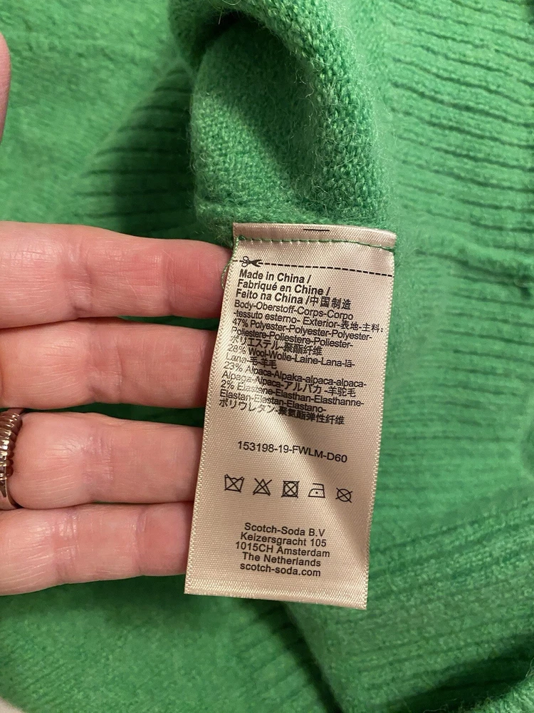 Size: XS Sleeve Length: Long Sleeve Color: Green Style: Pullover Theme: Christmas, Classic, Colorful, Designer, Holiday, Cozy, Oversized, St Patricks Day Neckline: Crew Neck Features: All Seasons, Lightweight, Oversized, Stretch Fabric Type: Knit Country/Region of Manufacture: China Size Type: Regular Occasion: Casual, Party/Cocktail, Travel Material: Alpaca, Polyester, Wool, Elastane Accents: Logo Pattern: Solid Brand: Scotch & Soda Type: Sweater Fit: Relaxed Department: Women