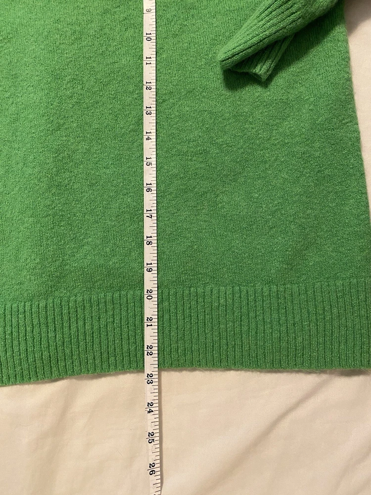 This is a soft and cozy oversized crew neck sweater with ribbed cuffs and neckline. Made of a blend of polyester, wool, alpaca and elastane for warmth, comfort, softness and stretch. Approximate measurements are in the photos. Please review for an accurate fit.