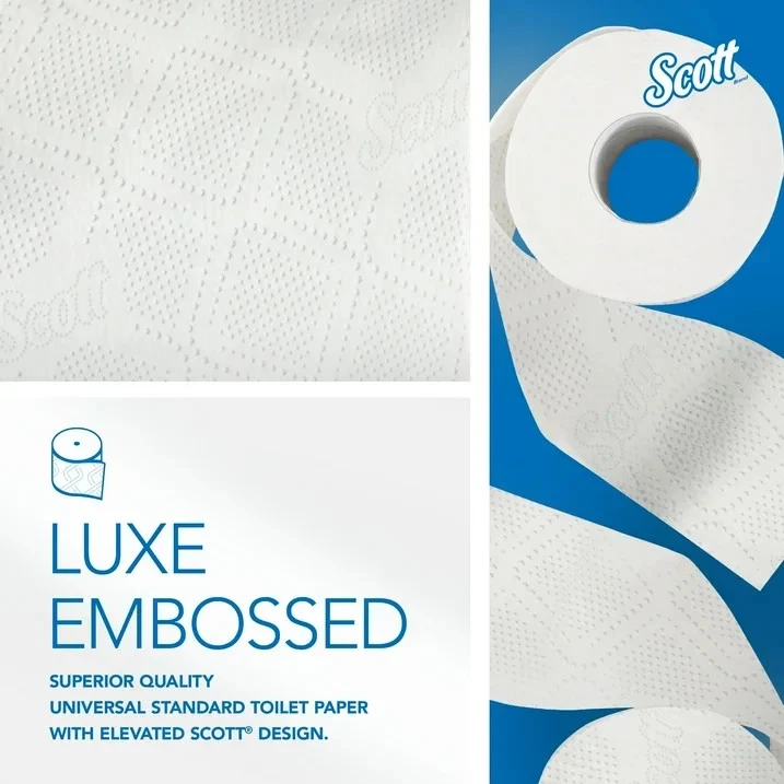 Product details Scott® provides reliable balance of efficiency, performance, and value. As a business owner, quality and cost-effectiveness are important in everything you purchase. With Scott® Professional Standard Roll bulk toilet paper, you can get the quality and performance you count on—and still stay within your budget. With the new paper design, our bath tissue is Unmistakably Scott® branded so you'll be recognized for providing the most well-known restroom brand in your facility. Plus, the bulk rolls are individually wrapped (they're protected until you're ready to use them) and fit with most universal toilet paper dispensers. These toilet paper rolls are designed to fit into universal, cored roll dispensers. If practicality, reliability and value top your list of criteria for bathroom supplies, trust Scott® Standard Roll Bath Tissue! Superior quality at value prices means that Scott® is always a great choice. 473 Sheets/Roll, 80 Rolls of Scott® Professional 100% Recycled Fiber Standard Roll Toilet Paper/Case, 37,840 Sheets/Case, with Elevated Design, 2-Ply, White, Individually wrapped rolls The 2-ply bathroom tissue is strong and absorbent enough to get the job done and satisfy your employees and guests. Individually wrapped Scott® bath tissue rolls are protected until you're ready to use them. These toilet paper rolls are designed to fit into universal, cored roll dispensers FSC® and ECOLOGO® certified; Contains 100% recycled fiber and a minimum of 30% post-consumer recycled content; Sewer and Septic Safe Model Number: 13217