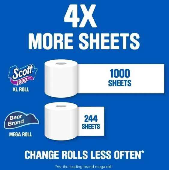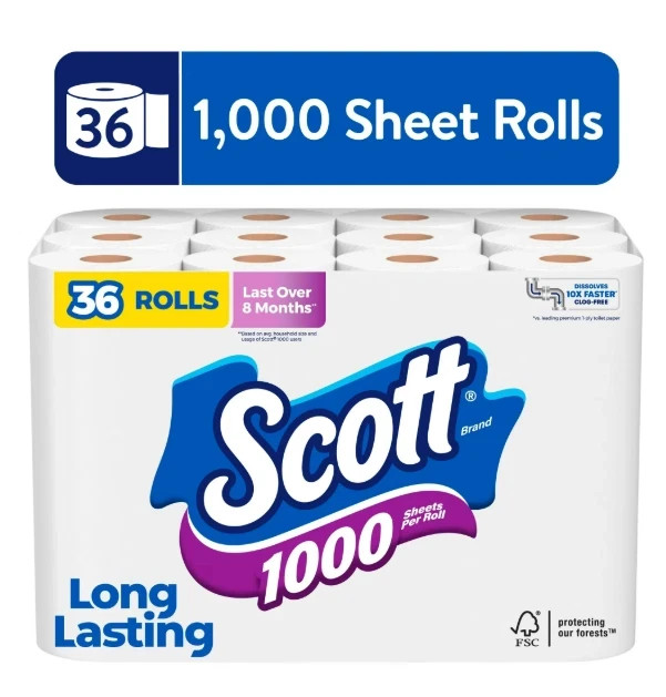 $ 30.86Scott 1000 Toilet Paper, 24 Rolls, 1,000 Sheets per Roll 1-ply 2x longer