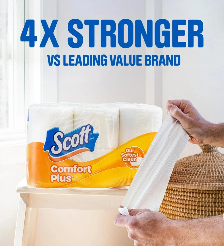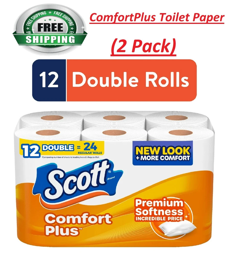 (2 Pack) Scott ComfortPlus Toilet Paper, 12 Double Rolls, 231 Sheets per Roll, Septic-Safe, 1-Ply Toilet Tissue Discover premium softness at an incredible price with Scott ComfortPlus toilet paper rolls. Gentle on you and on your wallet, Scott ComfortPlus is our softest clean. Offering everyday comfort plus reliable strength, this bath tissue is 3x thicker and 4x stronger than the leading value brand. Our toilet tissue combines just the right amount of softness and strength by featuring thick and plush sheets for a comforting clean. These toilet paper rolls are also trusted for flushability, as Scott ComfortPlus is septic-safe, sewer-safe, clog-free, and dissolves 10x faster*. With Scott ComfortPlus 1-ply toilet paper, you get 12 Double Rolls of 231 sheets per roll. Plus, Scott toilet paper is dedicated to help take care of our planet, so our tissue is made with responsibly sourced fibers. About this item (2 Pack) ComfortPlus Toilet Paper Scott ComfortPlus Toilet Paper, 12 Double Rolls,231 Sheets per Roll, Septic Safe 12 Double Rolls of Scott ComfortPlus Toilet Paper, 1-ply, 231 sheets per roll (12 double rolls = 24 regular rolls) Tested for Strength: Our Scott bath tissue is 4x stronger than the leading value brand so you can have a clean you can trust Designed for Comfort: Scott ComfortPlus toilet paper is our softest clean and 3x thicker than the leading value brand for a simple, efficient clean Trusted for Flushability: Our toilet tissue is made with clog-free technology and dissolves 10x faster* (*vs national brand soft & strong) Trusted for Sustainability: Scott is dedicated to help take care of our planet. Scott ComfortPlus toilet tissue is gentle on you and on your wallet Scott packaging and product may vary from