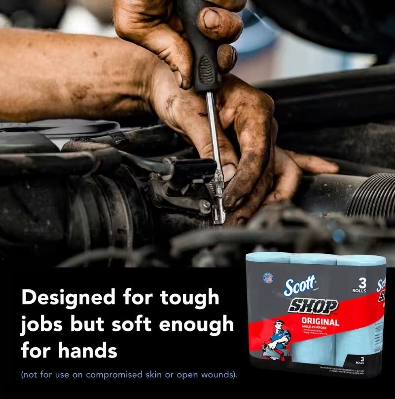 - NOTE: PLEASE READ PRODUCT DESCRIPTION CAREFULLY BEFORE PURCHASING. - NOTE: NO DELIVERY TO FREIGHT FORWARDING COMPANY ADDRESSES AND WAREHOUSE, BUSINESS ADDRESS, THE UPS STORE, UNITED STATES POSTAL SERVICE. - NOTE: WE DO NOT WORK ON SATURDAY AND SUNDAY. YOUR ORDER IS PROCESSED IN A MAXIMUM OF 10 BUSINESS DAYS, EXCLUDING SATURDAYS AND SUNDAYS. - NOTE: ORDERS TAKE A LONG TIME TO PROCESS, IF YOU CAN'T WAIT, YOU CAN SUBMIT A CANCELLATION REQUEST AT ANY TIME WHILE THE ORDER HAS NOT BEEN SHIPPED. - NOTE: DO NOT BUY MULTIPLE PRODUCTS IN THE SAME ORDER. PLEASE BUY EACH PRODUCT AS ONE ORDER. Scott Blue 1-Ply 9x11 Shop Towel Cleaning Wipes (3-Pack Bundle of 10) About This Product Whether you own an automotive shop (painting, detailing, or cleaning), are a D.I.Y. weekend warrior or are simply cleaning the garage, Scott Shop Towels Original (Blue) in standard rolls are a must in your list of supplies. These utility shop towels are ideal for changing oil, refilling fluids and general, multi-purpose automotive maintenance. They are the multi-purpose shop towels that can help you get just about any job done right. Plus, the convenient standard roll is portable, has perforated towels and fits on standard paper towel holders. Whether you're detailing, cleaning, staining, or polishing, trust Scott Shop Towels Original to help get the job done. Highlights 55 blue sheets/standard roll, 10 bundles of 3pk (30 rolls a Case), 1,650 towels/case Multi-purpose shop towels are designed for cleaning up grease, liquids, oils and spills in automotive repair shops and garages Choose the larger pack size to save money and ensure you always have a Roll ready Using disposable shop towels (as an alternative to laundered cloth towels) better protects you from lead exposure, use them for changing oil, refilling fluids and general automotive maintenance Portable standard roll format fits on standard paper towel dispensers and comes perforated, so you can always get what you need Shop towels are ultra-strong, durable and work well even when they're wet