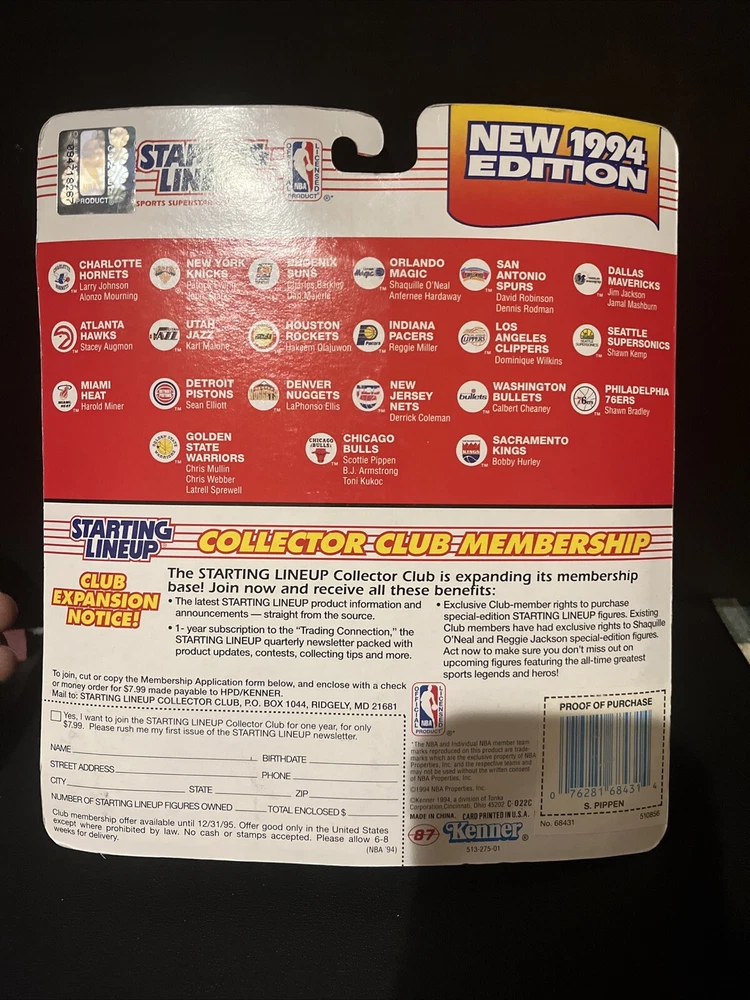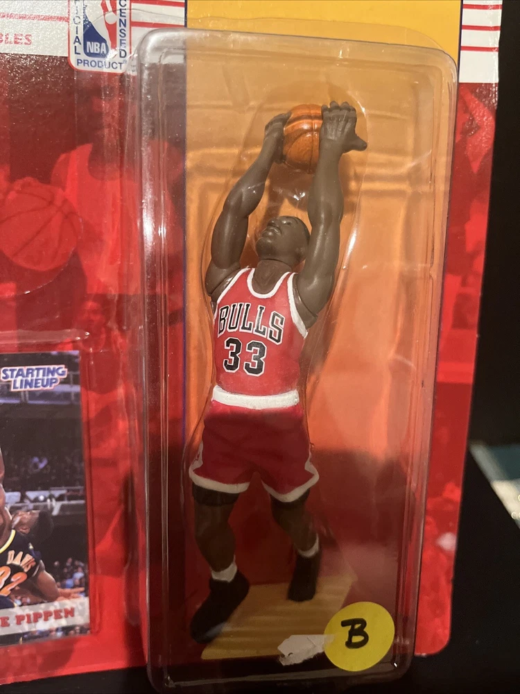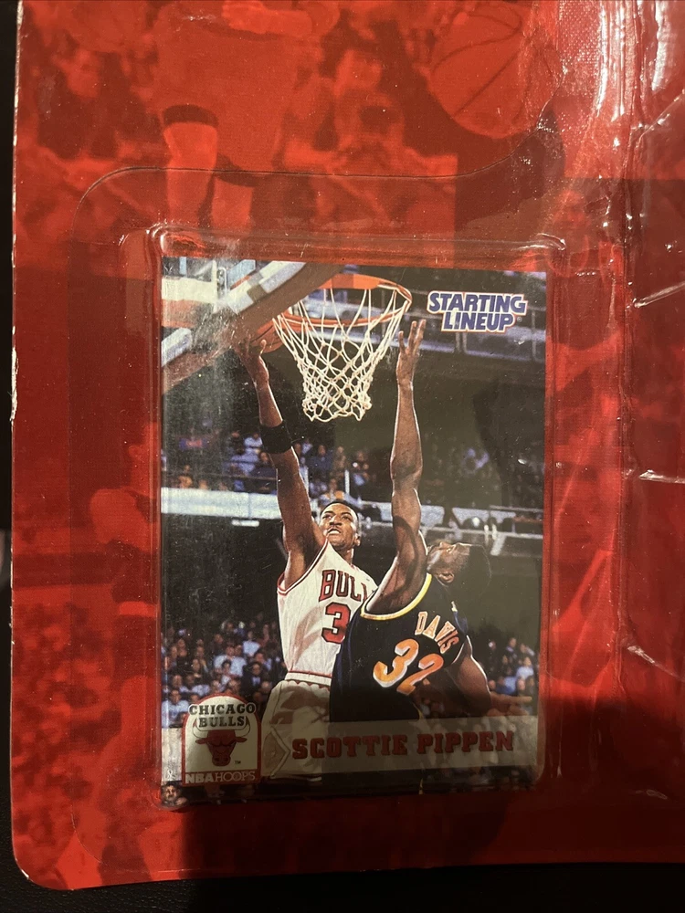 For sale is a Scottie Pippen 1994 Starting Lineup SLU action figure. This officially licensed product is perfect for any Chicago Bulls fan or basketball collector. The figure features Scottie Pippen in his Bulls uniform, ready to take on the competition. It is made by Kenner and is a great addition to any sports memorabilia collection.