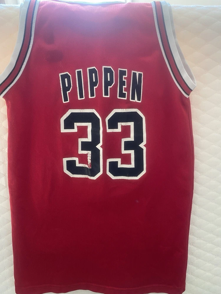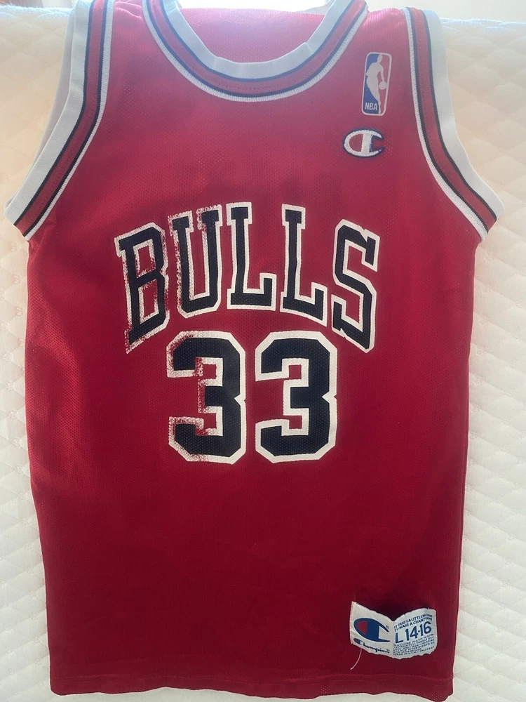 Sport:BasketballCapacity:Less than 8 ozPre & Post Season:Regular SeasonProduct:JerseyFeatured Refinements:Vintage JerseyOfficially Licensed:YesLeague:National Basketball Association (NBA)Player:Scottie PippenTeam:Chicago BullsBrand:ChampionColor:RedGender:Unisex ChildrenCountry/Region of Manufacture:United StatesSize:youth