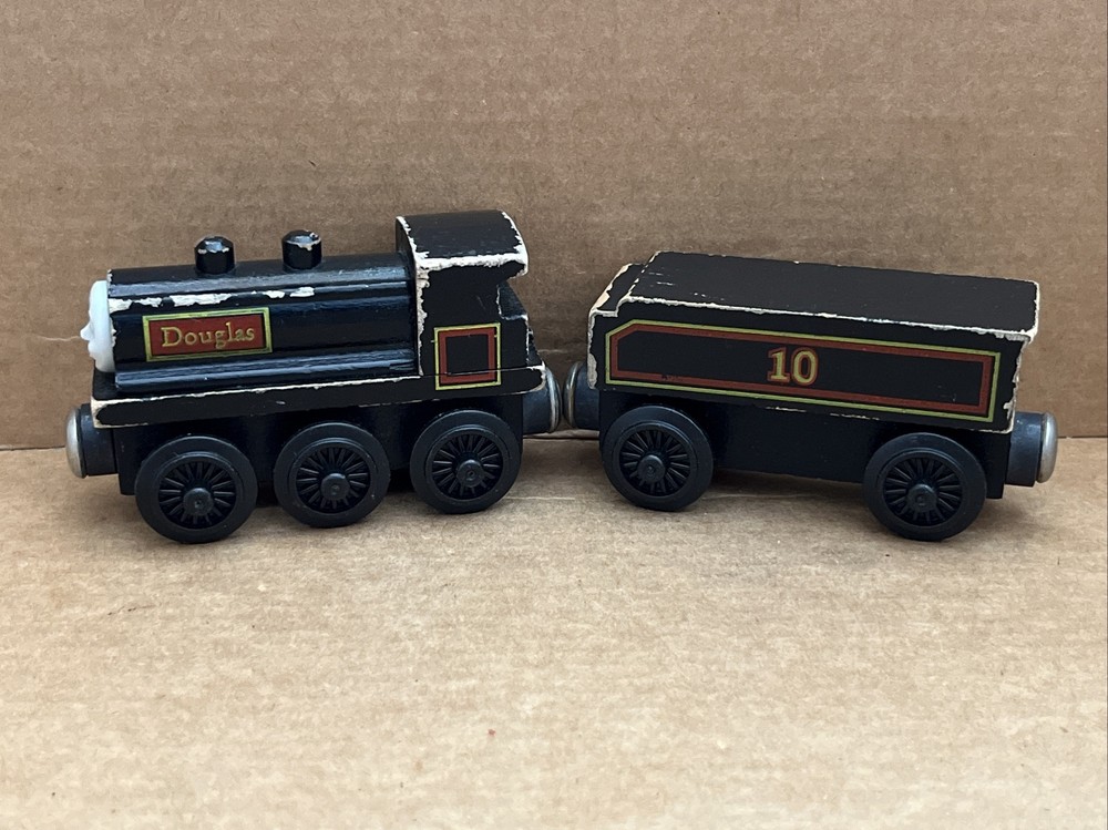 DOUGLAS 1992 & TENDER Thomas & Friends Wooden Railway train tank engine First year or First edition. Hard to tell but I don’t think it’s got the hand-painted eyes. VTG staples and flat Magnets. See photos for wear and tear. Not too bad. Ships USPS Ground Advantage