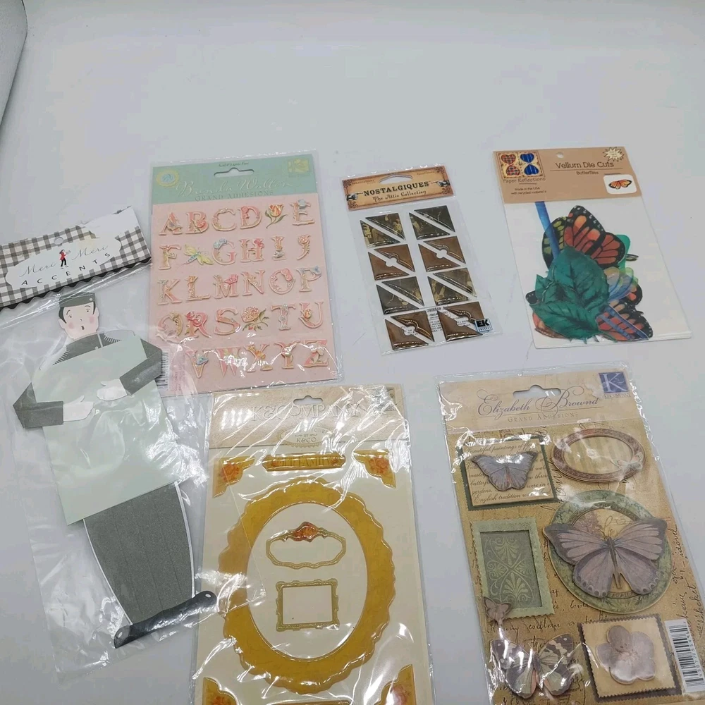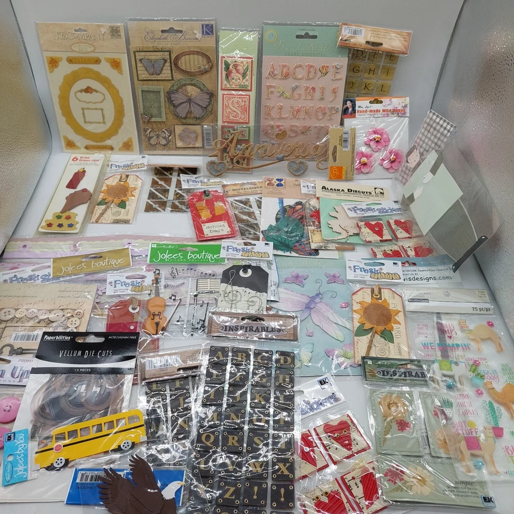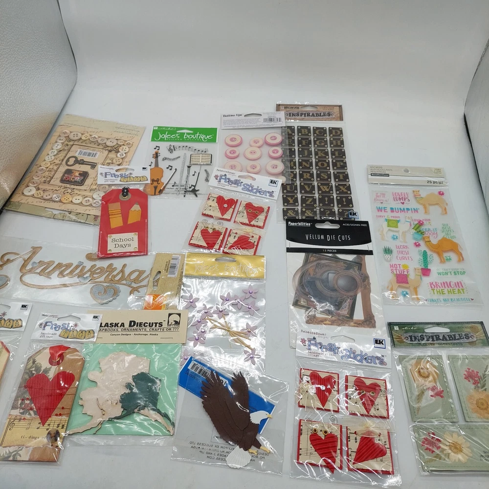 Lot of various stickers buttons letters etc. Includes school bus hearts Butterflies flowers eagle etc