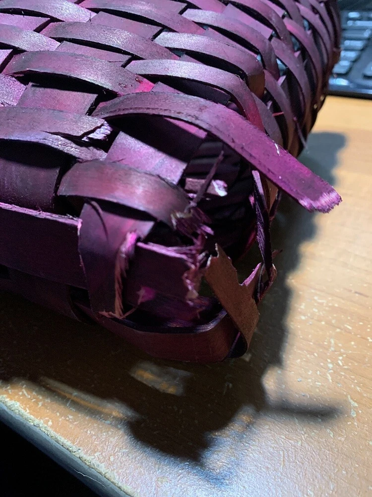 NOTE - DUE TO THE BOTTOM CORNER IS BROKEN this item is being sold as 'Scratch and Dent' at a reduced price (DAMAGE MAY VARY PER PRODUCT AVAILABLE). Please see available photos for damages. Made of Wood with a Dark Red Stain in a Classic Warp and Weft Weaved Design with Whipstitch Trim Hangs From 2 Built-In Handles Display in a Window or Create a Stylish Wall Display and Hang Below an Upcycled Window, Old Shutters or Just as they Are OVERALL SIZE - LG - 23.25 Inches Long, 11 Inches High, 4.75 Inches Wide / SM - 19 Inches Long, 6.25 Inches High, 3.5 Inches Wide Our eBay Store About Us Add to Favorite Sellers Dark Red Woven Wood Window Basket Set of 2 NOTE: DUE TO THE BOTTOM CORNER IS BROKEN this item is being sold as 'Scratch and Dent' at a reduced price (DAMAGE MAY VARY PER PRODUCT AVAILABLE). Please see available photos for damages. NOTE - DUE TO THE BOTTOM CORNER IS BROKEN this item is being sold as 'Scratch and Dent' at a reduced price (DAMAGE MAY VARY PER PRODUCT AVAILABLE). Please see available photos for damages. Made of Wood with a Dark Red Stain in a Classic Warp and Weft Weaved Design with Whipstitch Trim Hangs From 2 Built-In Handles Display in a Window or Create a Stylish Wall Display and Hang Below an Upcycled Window, Old Shutters or Just as they Are OVERALL SIZE - LG - 23.25 Inches Long, 11 Inches High, 4.75 Inches Wide / SM - 19 Inches Long, 6.25 Inches High, 3.5 Inches Wide NOTE: DUE TO THE BOTTOM CORNER IS BROKEN this item is being sold as 'Scratch and Dent' at a reduced price (DAMAGE MAY VARY PER PRODUCT AVAILABLE). Please see available photos for damages. Indoors or outdoors, these hanging planter baskets make an attractive addition to your home. Use them to bring a pop of color with fresh or artificial flowers, plants, decorative grasses and more. Grow fresh herbs to use in the kitchen for cooking meals, two built-in handles make it easy to hang them anywhere. Display them in a window or below an upcycled window or shutters to decorate the living room or foyer. Each is made of wood woven in a classic warp and weft pattern with and stained in dark red. Large: 23.25 inch long, 11 inch high, 4.75 inch wide. Small: 19 inch long, 6.25 inch high, 3.5 inch wide. Product Details Color Burgundy Height 11.5 Length 23.25 Weight 0.9 LB