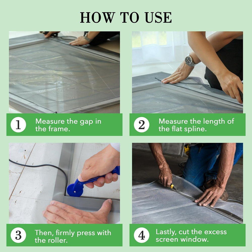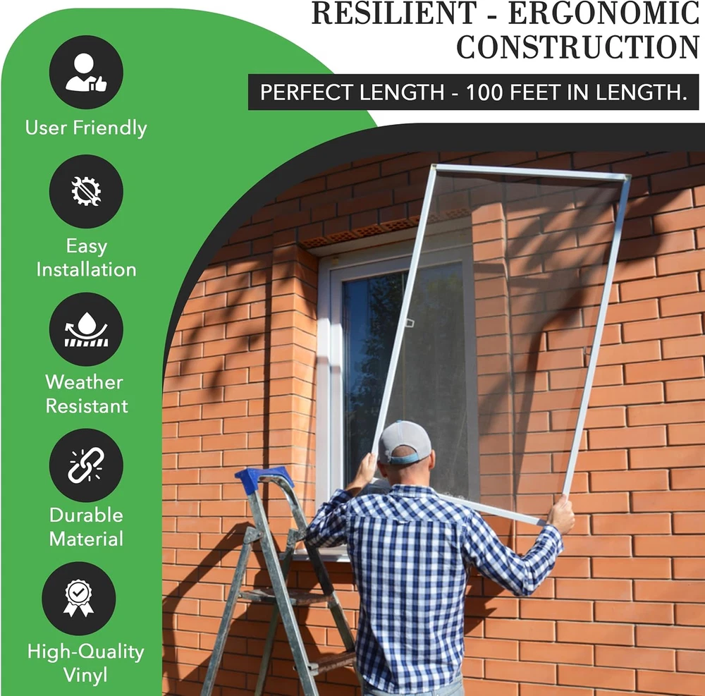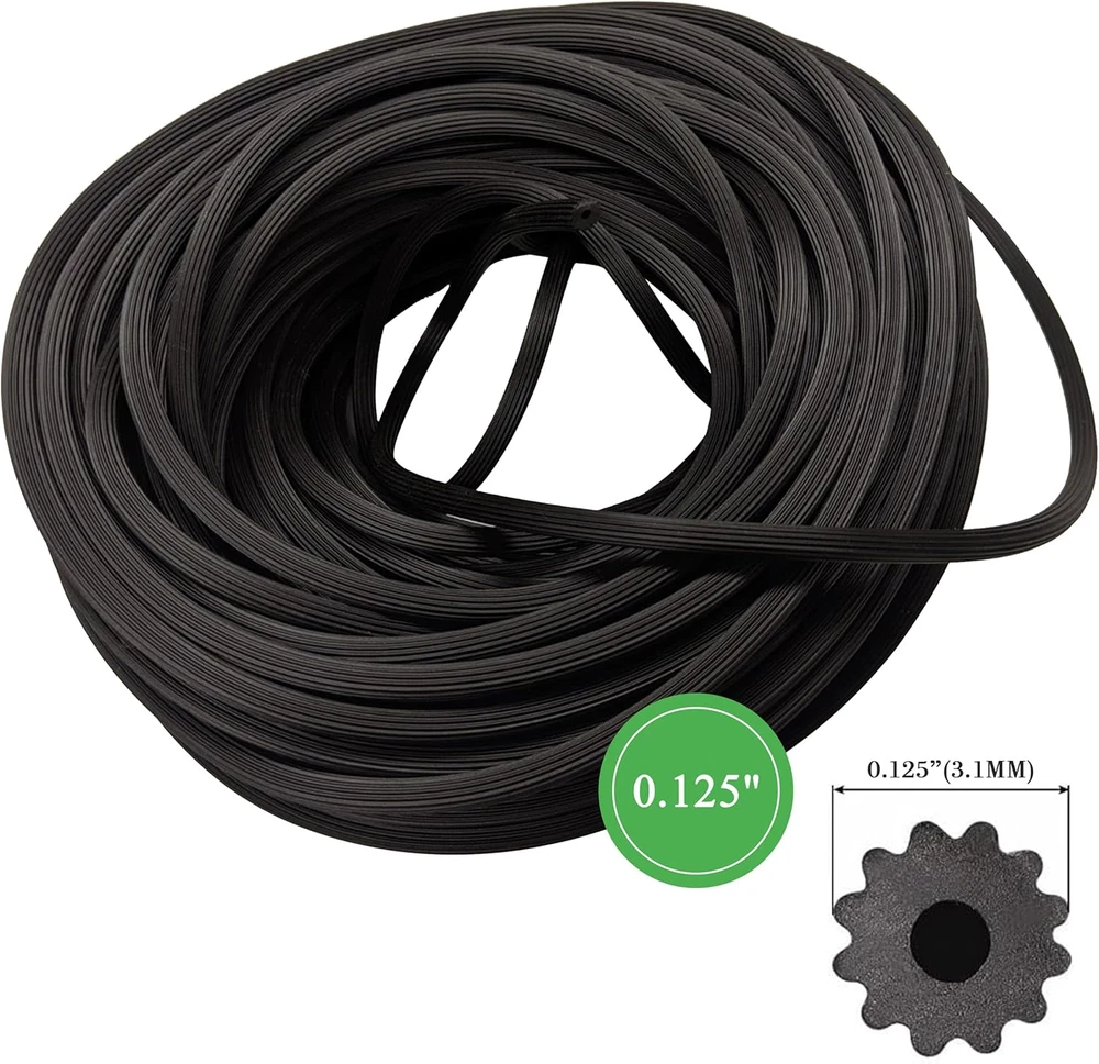 Durable serrated design: Our window screen replacement spline is engineered with a serrated edge to ensure a secure grip on screen materials. This design prevents screen materials from slipping or coming loose, providing long-lasting and reliable performance. Effortless installation: Say goodbye to frustrating and time-consuming installations. This spline for window screen is designed for ease of use. It's incredibly simple to stretch and fit into screen frame channels, making it a hassle-free solution for DIY enthusiasts and professionals alike. Bulk size: With 100 feet of window screen spline in a single roll. Whether you're repairing existing screens or building new ones.. High-quality vinyl: Made of high-quality vinyl, our screen door spline offers exceptional durability and weather resistance. It can withstand exposure to the elements without deteriorating, making it perfect for both indoor and outdoor applications. Universal fit: Our 0.125-inch diameter screen retainer spline is designed to fit a wide range of screen frame channels, providing versatility for various screen sizes and types. Whether you're working on windows, doors, or other screen applications, our window spline is compatible with most standard frames. Product Description